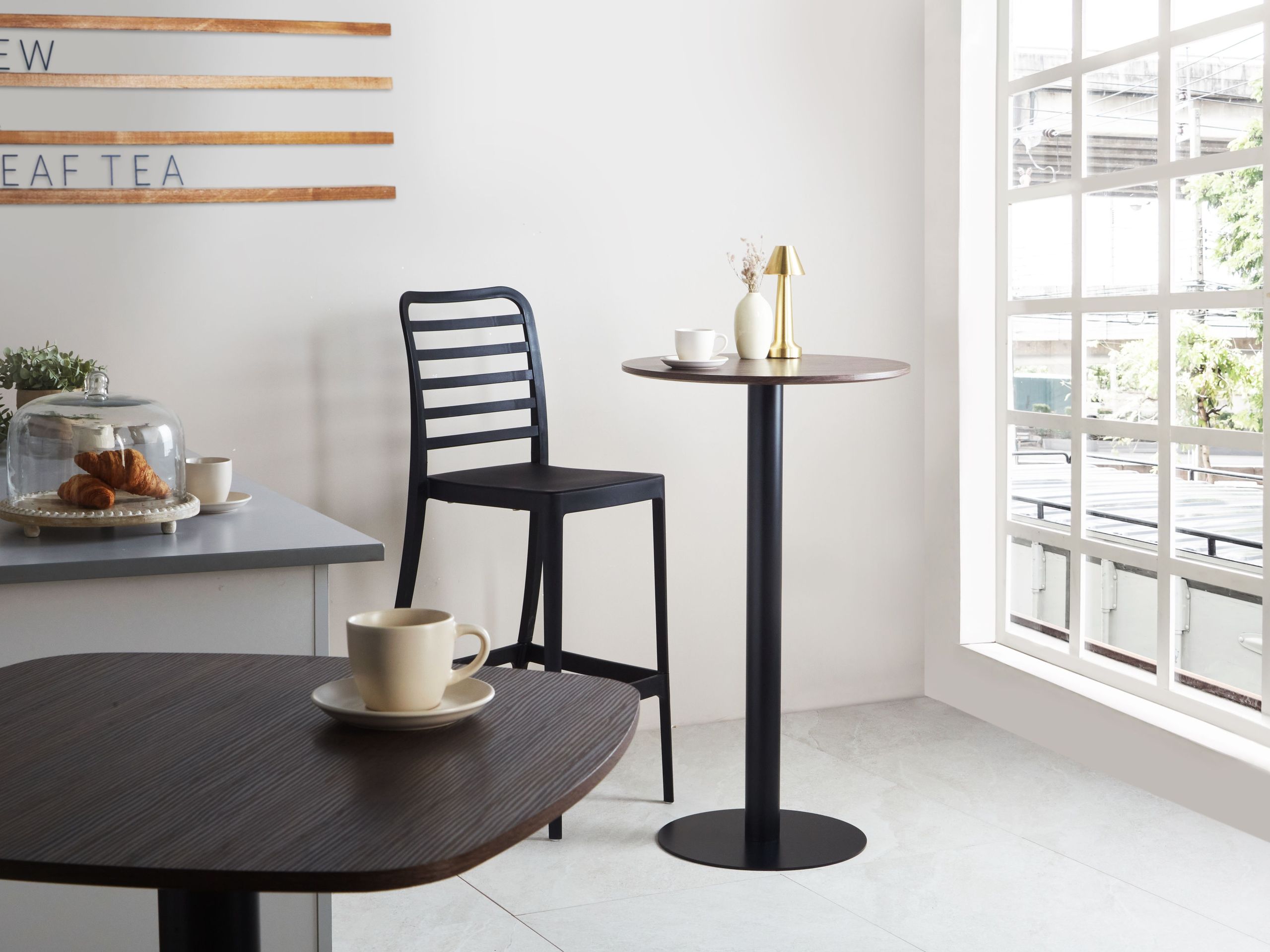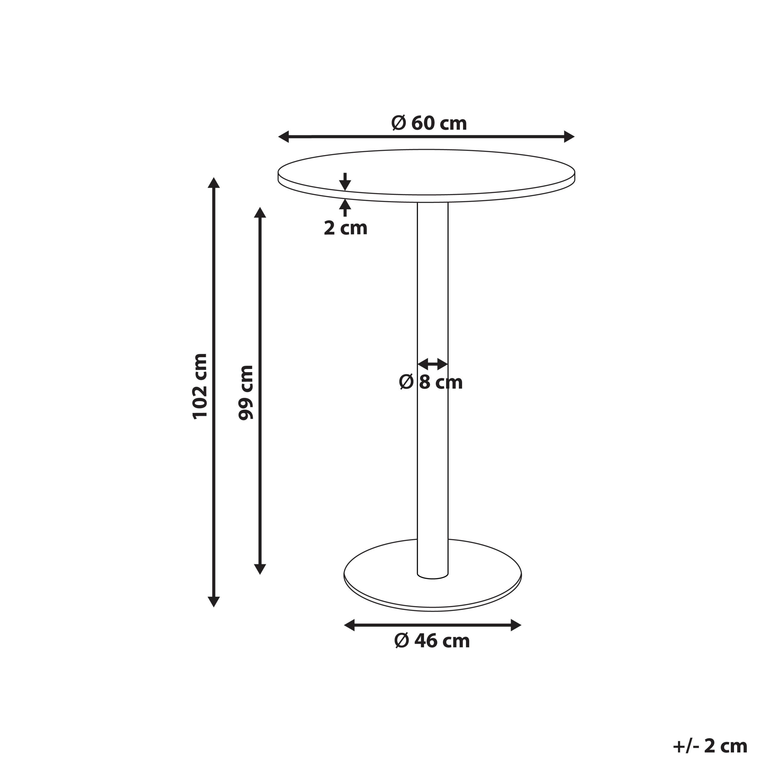Moderni pyöreä pöytä. Tämä nykyaikainen baaripöytä tarjoaa tyyliä viemättä liikaa tilaa, mikä tekee siitä tyylikkään ja modernin lisän mihin tahansa kotiin. Pyöreässä MDF-levystä valmistetussa tasossa on klassinen paperiviilutettu viimeistely yhdistettynä kestävään ja tukevaan rautaiseen jalustaan, mikä luo puhtaan, minimalistisen ilmeen. Ihanteellinen pienempiin tai avoimiin tiloihin, joissa käytännöllisellä muotoilulla on merkitystä.