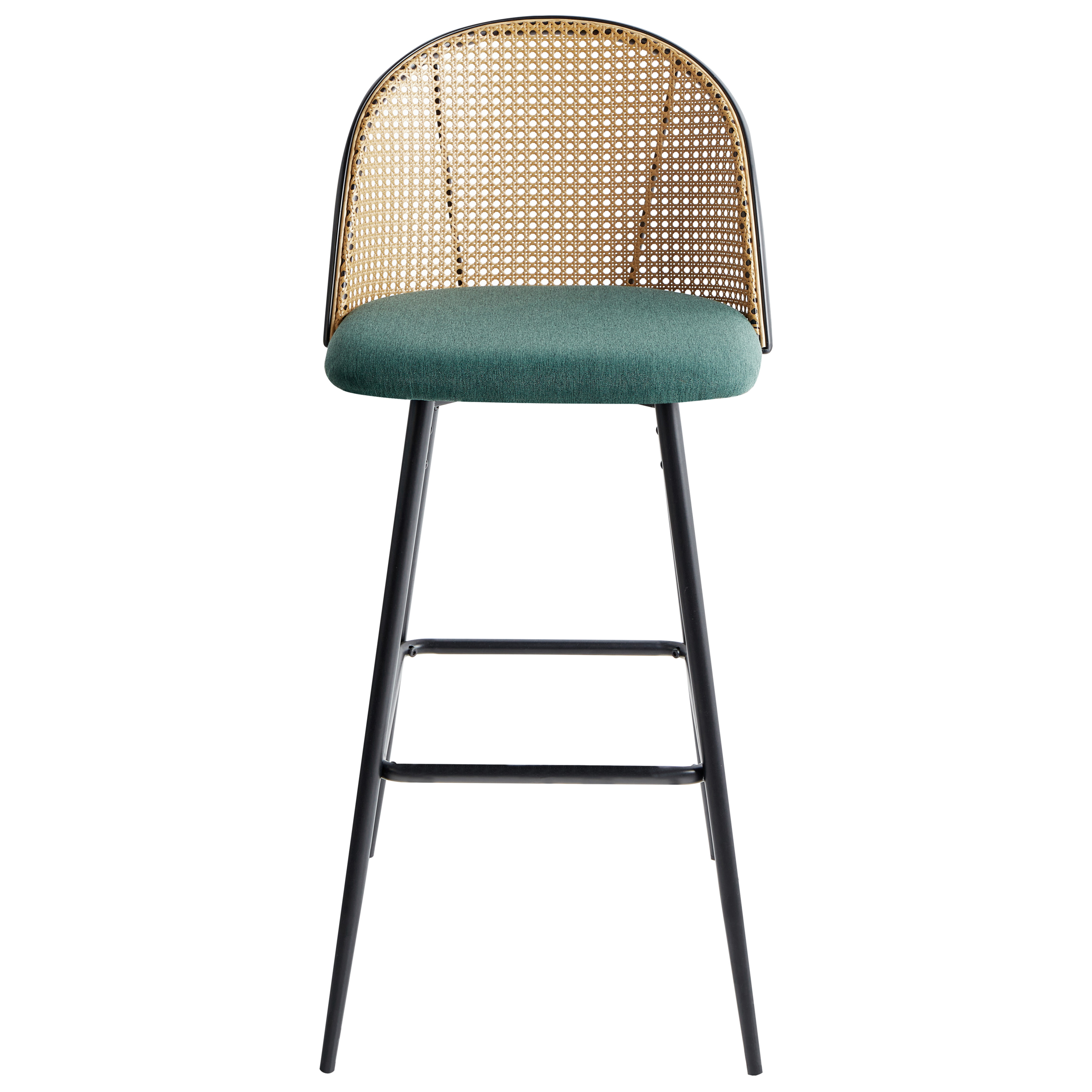 Retrotyylinen baarituolisetti rottinkipunoksisilla selkänojilla. Koe ajattoman muotoilun taika tällä kahden baarituolin setillä. Raudasta valmistetut rungot antavat baarituoleille industriaalista ilmettä, kun taas värimaailma lisää retrohenkeä. Pellavaverhoillut istuimet tarjoavat mukavuutta, ja leveät, koristeellisella rottinkipunoksella viimeistellyt selkänojat tuovat ripauksen vintage-ilmettä. Jaloissa olevat muovisuojat suojaavat lattiaa naarmuilta. Kohenna ympäristöäsi tällä täydellisellä tyylin ja kestävän viehätyksen yhdistelmällä.