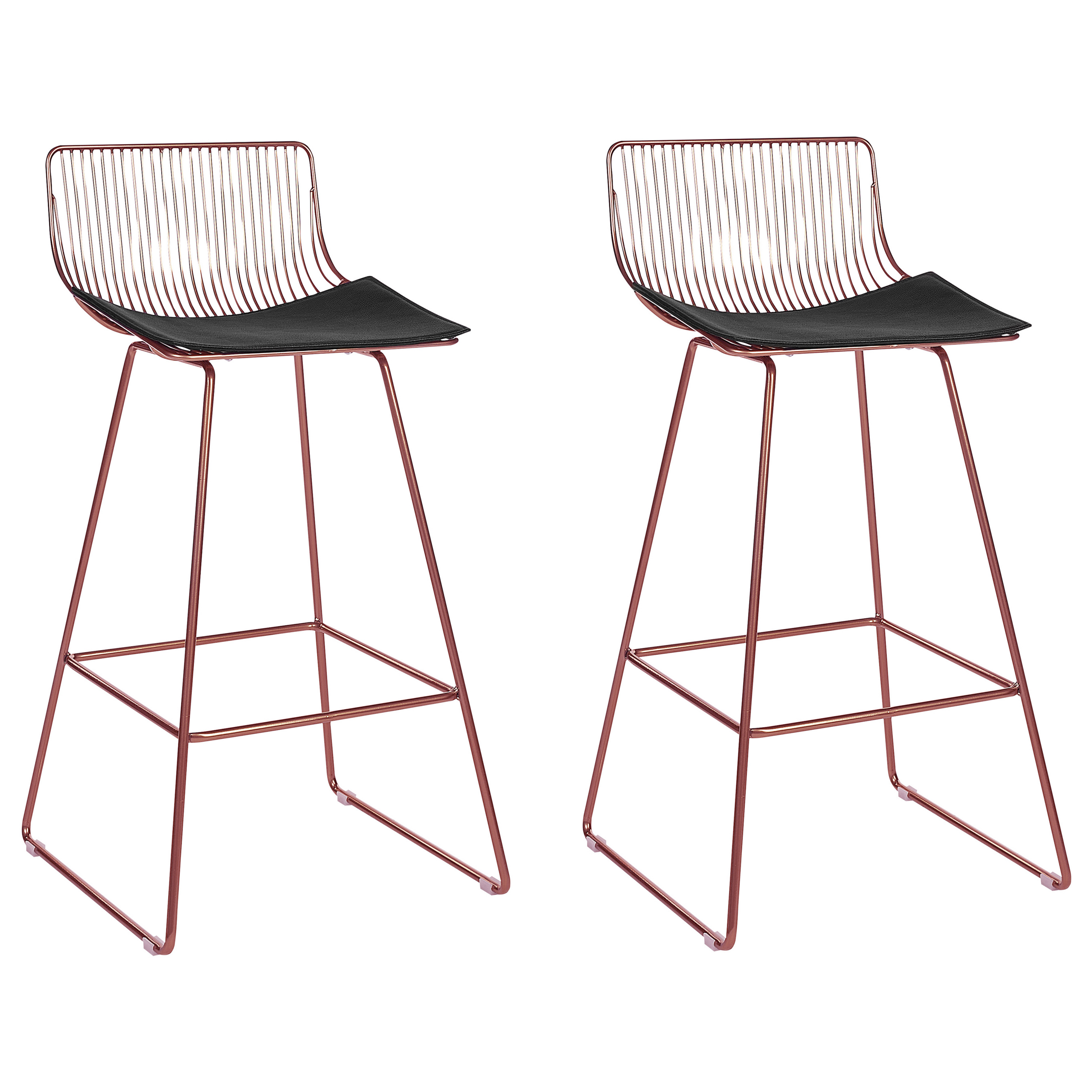 Industriaalinen baarituolisetti keinonahkaistuimilla. Tämä kiiltävän ruusukullanvärisellä viimeistelyllä koristeltu baarituolisetti on ylellisyyden ja hienostuneisuuden ruumiillistuma, joka luo mihin tahansa tilaan välitöntä industriaalista glamour-tunnelmaa. Ne on valmistettu vahvasta ja kestävästä teräksestä. Mukana toimitetut mustalla keinonahalla päällystetyt istuintyynyt huolehtivat mukavasta istumisesta. Tuolin säleikköinen, lyhyt selkänoja ei ainoastaan näytä upealta, vaan tarjoaa myös täydellisen tuen selälle. Uudista keittiösi tai ruokailutilasi sisustusta tällä erittäin tyylikkäällä setillä.