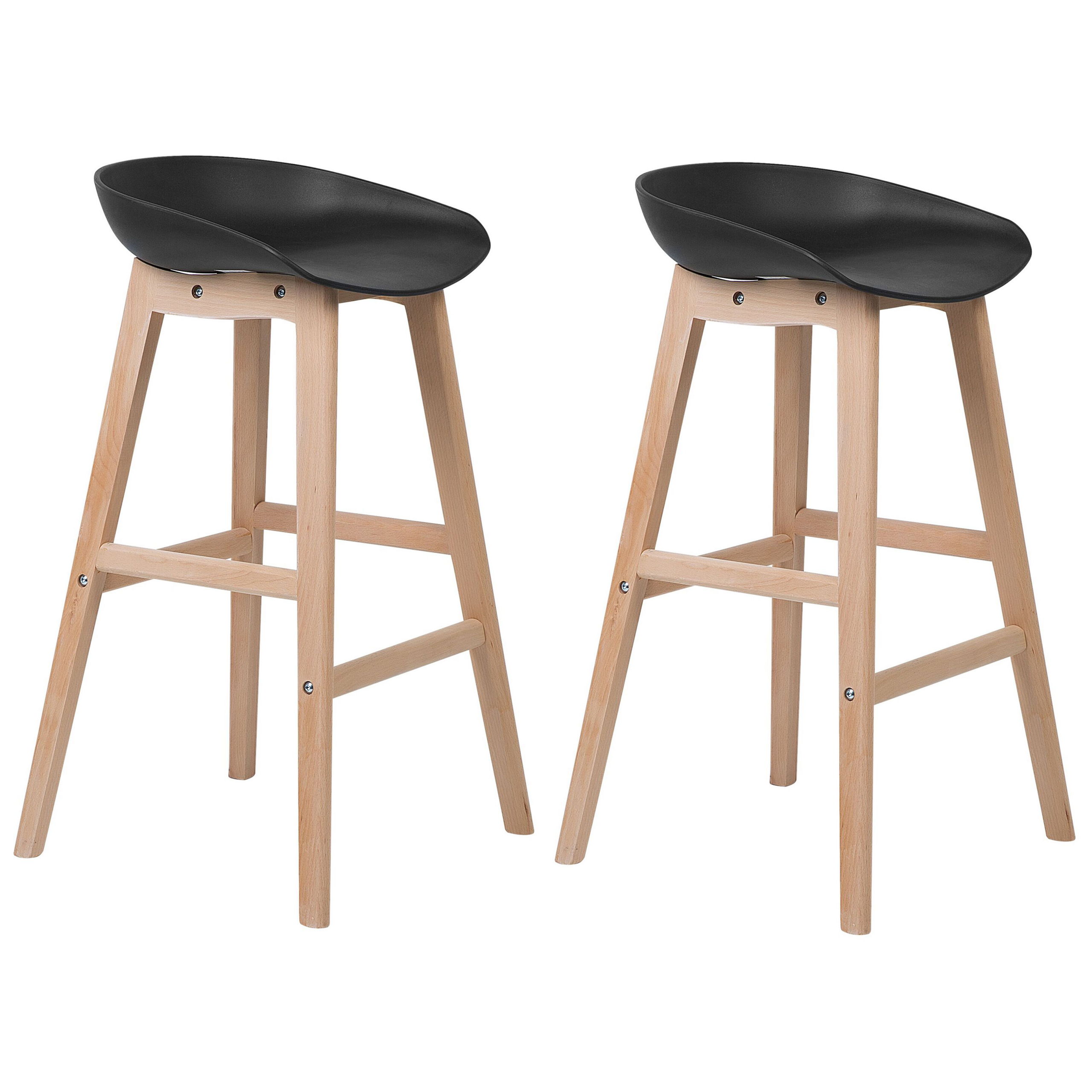 Minimalistiset korkeat tuolit. Tuo keittiöön tai ruokailutilaan ripaus skandinaavista viehätystä ja yksinkertaisuutta tällä kahden baarituolin setillä. Ajattoman värimaailman ansiosta ne sulautuvat vaivattomasti moderneihin, minimalistisiin ja perinteisiin sisustuksiin. Kestävästä pyökkipuusta valmistettujen jalkojen vaalea sävy antaa tuoleille luonnollisen, viimeistelemättömän ilmeen. Polypropeenista valmistetut profiloidut istuimet takaavat istumamukavuuden.