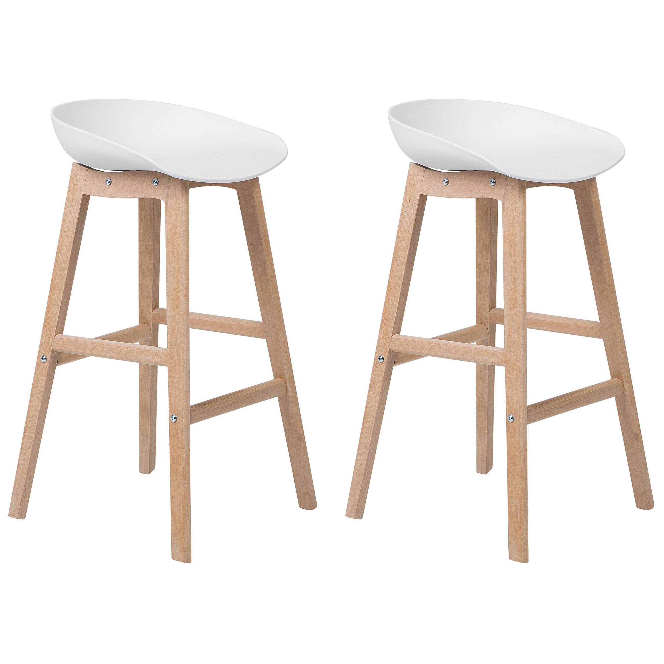 Minimalistiset korkeat tuolit. Tuo keittiöön tai ruokailutilaan ripaus skandinaavista viehätystä ja yksinkertaisuutta tällä kahden baarituolin setillä. Ajattoman värimaailman ansiosta ne sulautuvat vaivattomasti moderneihin, minimalistisiin ja perinteisiin sisustuksiin. Kestävästä pyökkipuusta valmistettujen jalkojen vaalea sävy antaa tuoleille luonnollisen, viimeistelemättömän ilmeen. Polypropeenista valmistetut profiloidut istuimet takaavat istumamukavuuden.