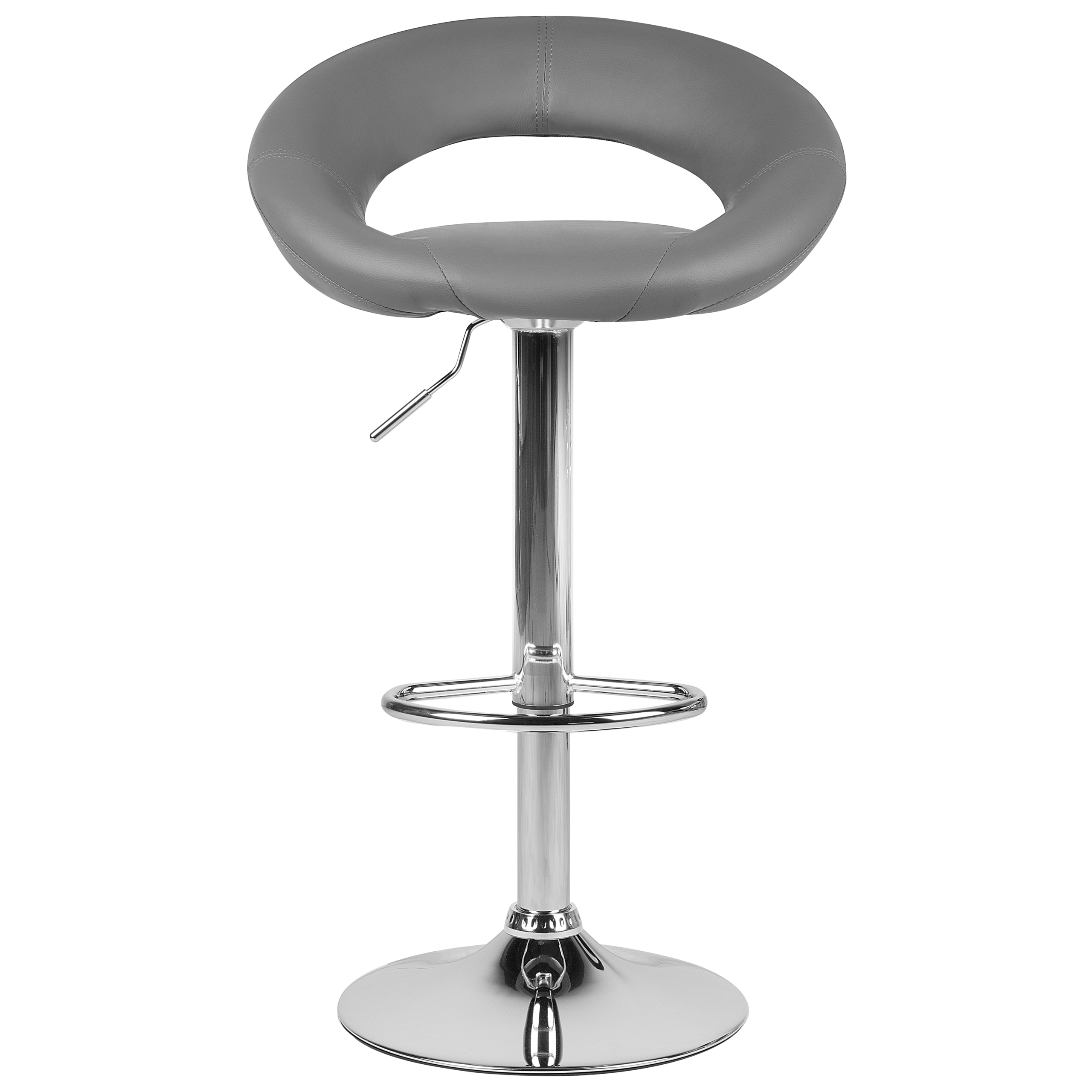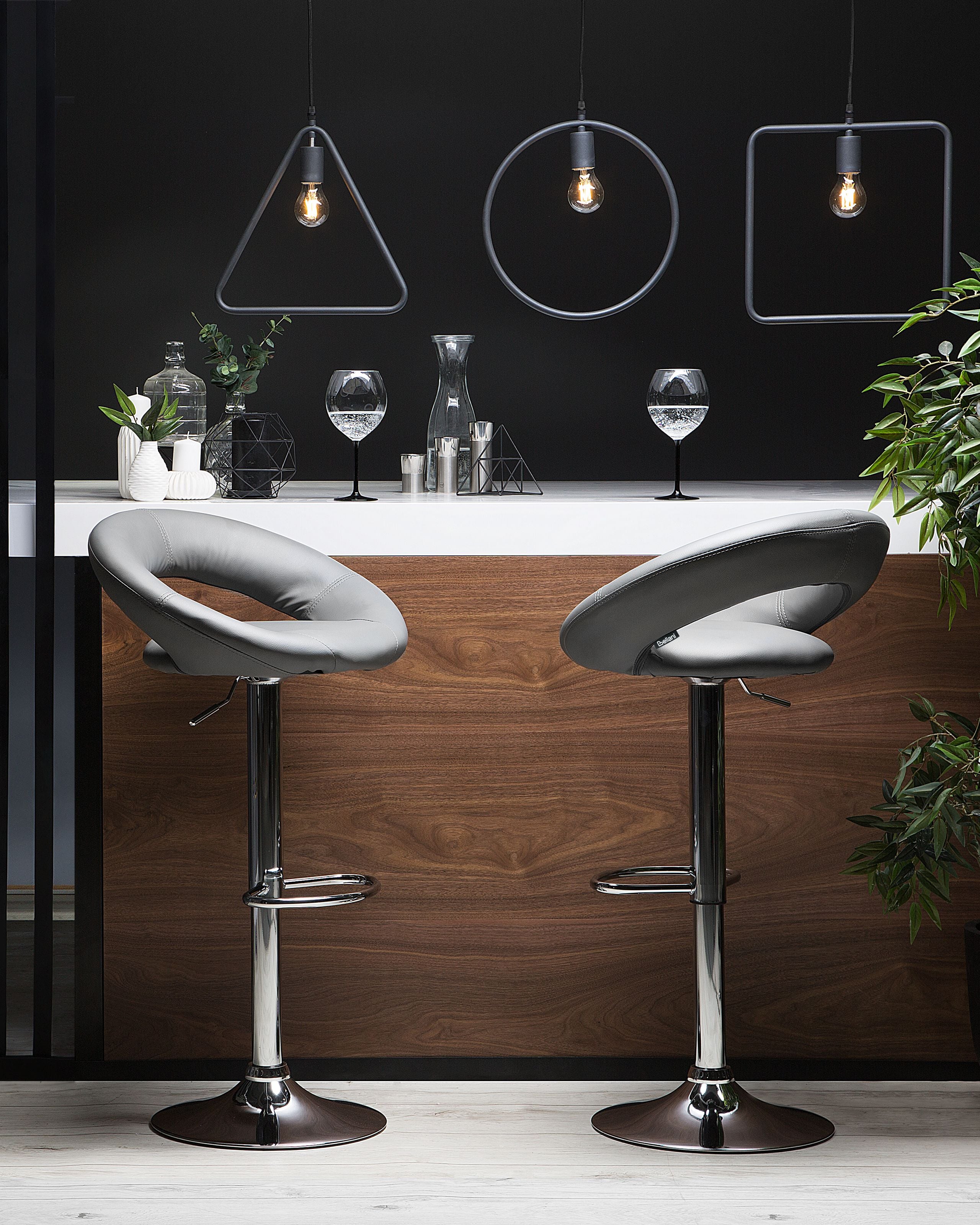 Tyylikkäät pyörivät baarijakkarat. Nämä mukavuutta ja nykyaikaista muotoilua yhdistävä baarijakkarat sopivat niin keittiöön kuin ruokailutilaankin. Korkealaatuisella keinonahalla verhoillut istuimet on pehmustettu paksusti maksimaalisen istumamukavuuden takaamiseksi. Hopeiset metallijalustat tekevät tuoleista vakaat ja antavat niille ripauksen eleganssia. Ne kääntyvät 360 astetta ja omaavat kaasunostimella toimivan korkeudensäädön. Lisäksi jalustojen jalkatuki tarjoaa kätevän paikan jaloille. Baarituolit sulautuvat helposti jokaiseen moderniin sisustukseen.