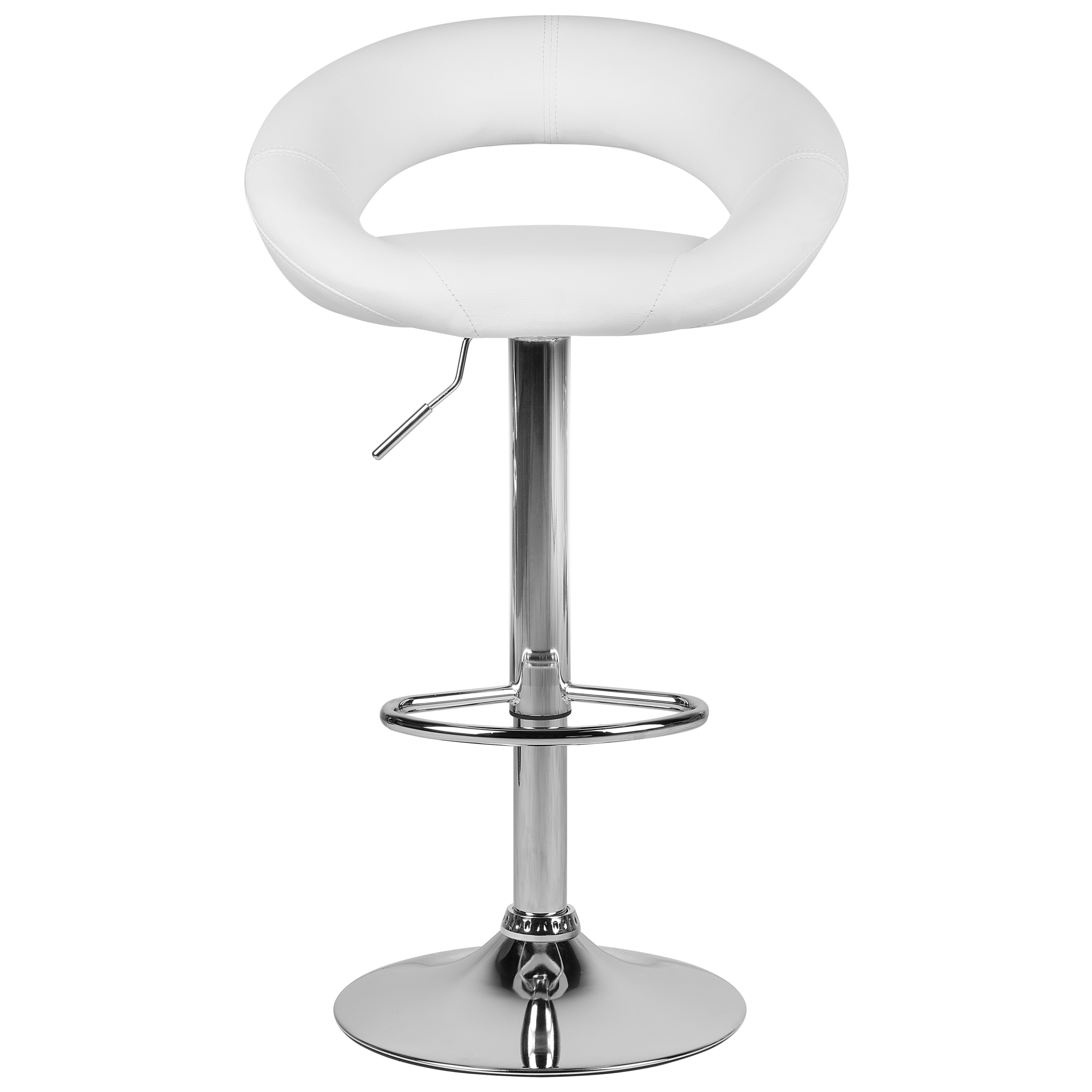 Tyylikkäät pyörivät baarijakkarat. Nämä mukavuutta ja nykyaikaista muotoilua yhdistävä baarijakkarat sopivat niin keittiöön kuin ruokailutilaankin. Korkealaatuisella keinonahalla verhoillut istuimet on pehmustettu paksusti maksimaalisen istumamukavuuden takaamiseksi. Hopeiset metallijalustat tekevät tuoleista vakaat ja antavat niille ripauksen eleganssia. Ne kääntyvät 360 astetta ja omaavat kaasunostimella toimivan korkeudensäädön. Lisäksi jalustojen jalkatuki tarjoaa kätevän paikan jaloille. Baarituolit sulautuvat helposti jokaiseen moderniin sisustukseen.
