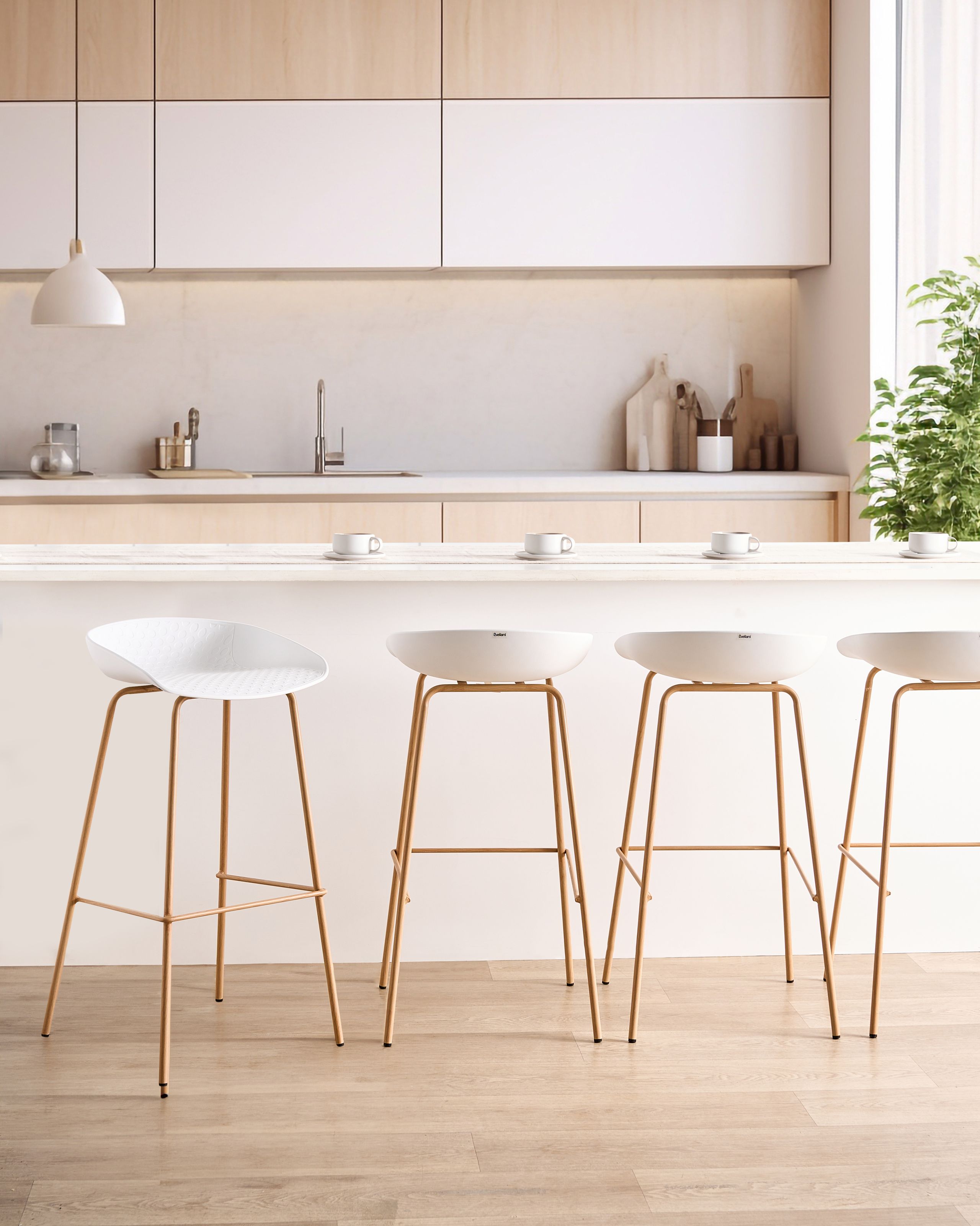 Skandinaavinen kevyt baarijakkarasetti. Tämä moderni neljän baarituolin setti yhdistää minimalistisen skandinaavisen muotoilun kevyeen mutta tukevaan runkoon. Istuimet on valmistettu kestävästä synteettisestä materiaalista, joka tarjoaa mukavuutta ja on helppo puhdistaa. Sirot rautajalat on viimeistelty lämpösiirtotekniikalla toteutetulla puukuvioinnilla, joka antaa niille luonnollisen ulkonäön. Baarituolit sopivat täydellisesti mihin tahansa sisustustyyliin.
