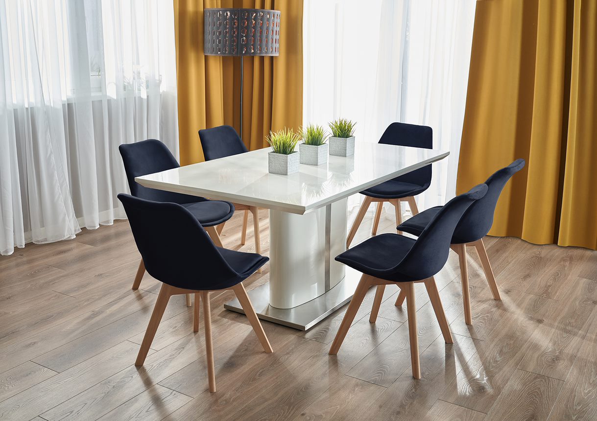 Siinä on täydellisesti muotoiltu selkänoja, joka on päällystetty samettilla, joka yhdessä istuimelle asetetun pehmeän tyynyn kanssa takaa erinomaisen mukavuuden. Puiset pyökistä valmistetut ja vaaleasta varjostimesta valmistetut jalat takaavat vakauden ja kestävyyden. Tuoli on erittäin käytännöllinen ja toimiva. Väri: musta