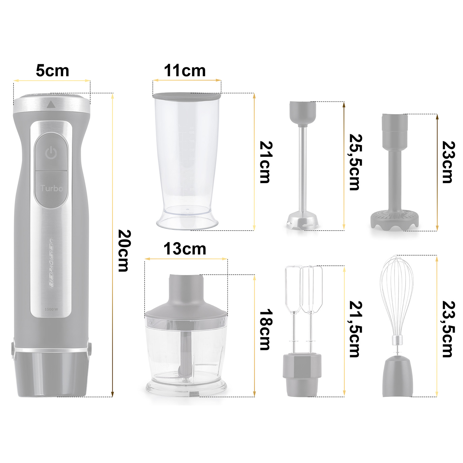 Supertehokas 1500 W:n tehosekoitin ja täydellinen lisävarustesarja