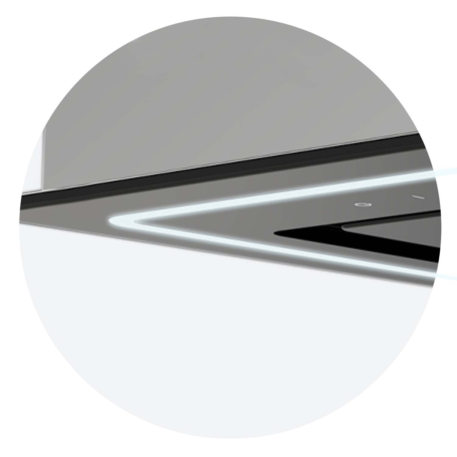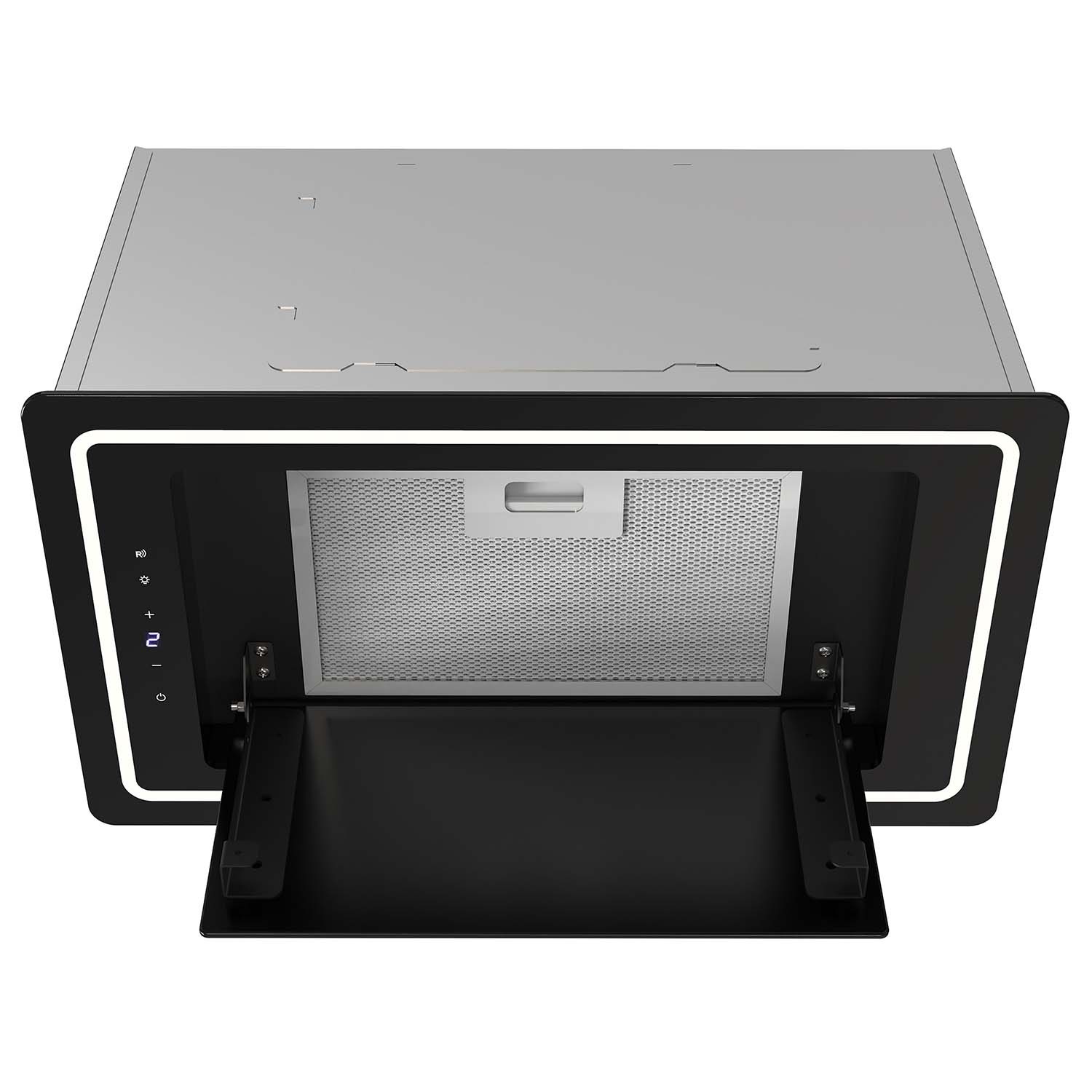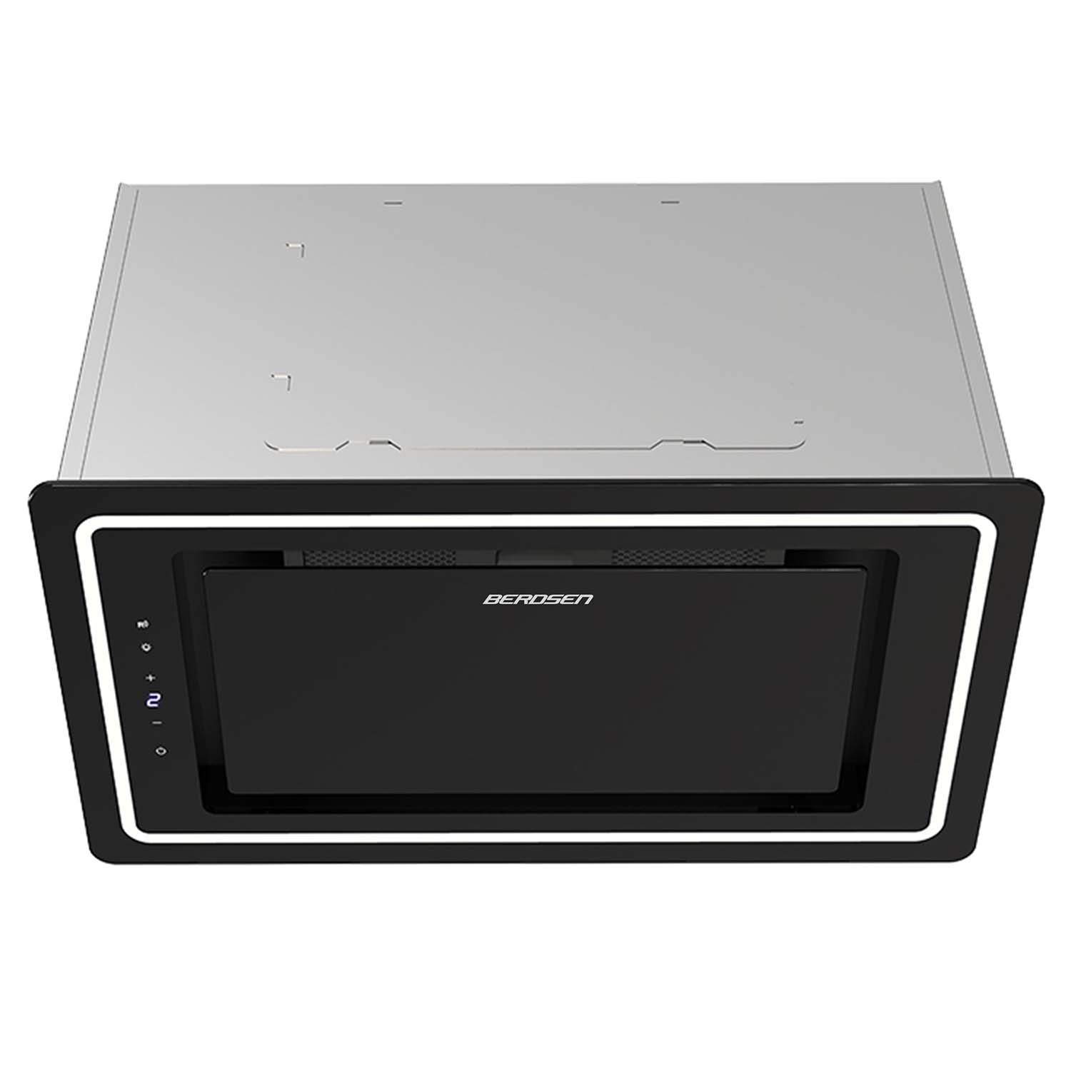 BT-239 on sisäänrakennettava liesituuletin mustalla lasilevyllä ja kaukosäätimellä. Minimalistinen muotoilu tekee siitä huomaamattoman osan keittiötä, samalla kun se tarjoaa tehokkaan ilmanpoiston ja valaistuksen.