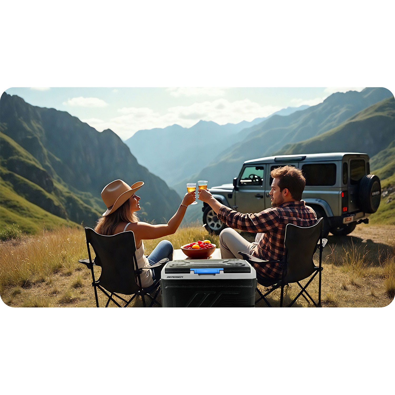 Luotettava jäähdytys tien päällä. 40 dB melutaso takaa mukavuuden ilman häiritsevää ääntä, olitpa sitten leirillä, matkailuautossa tai ulkona rentoutumassa.