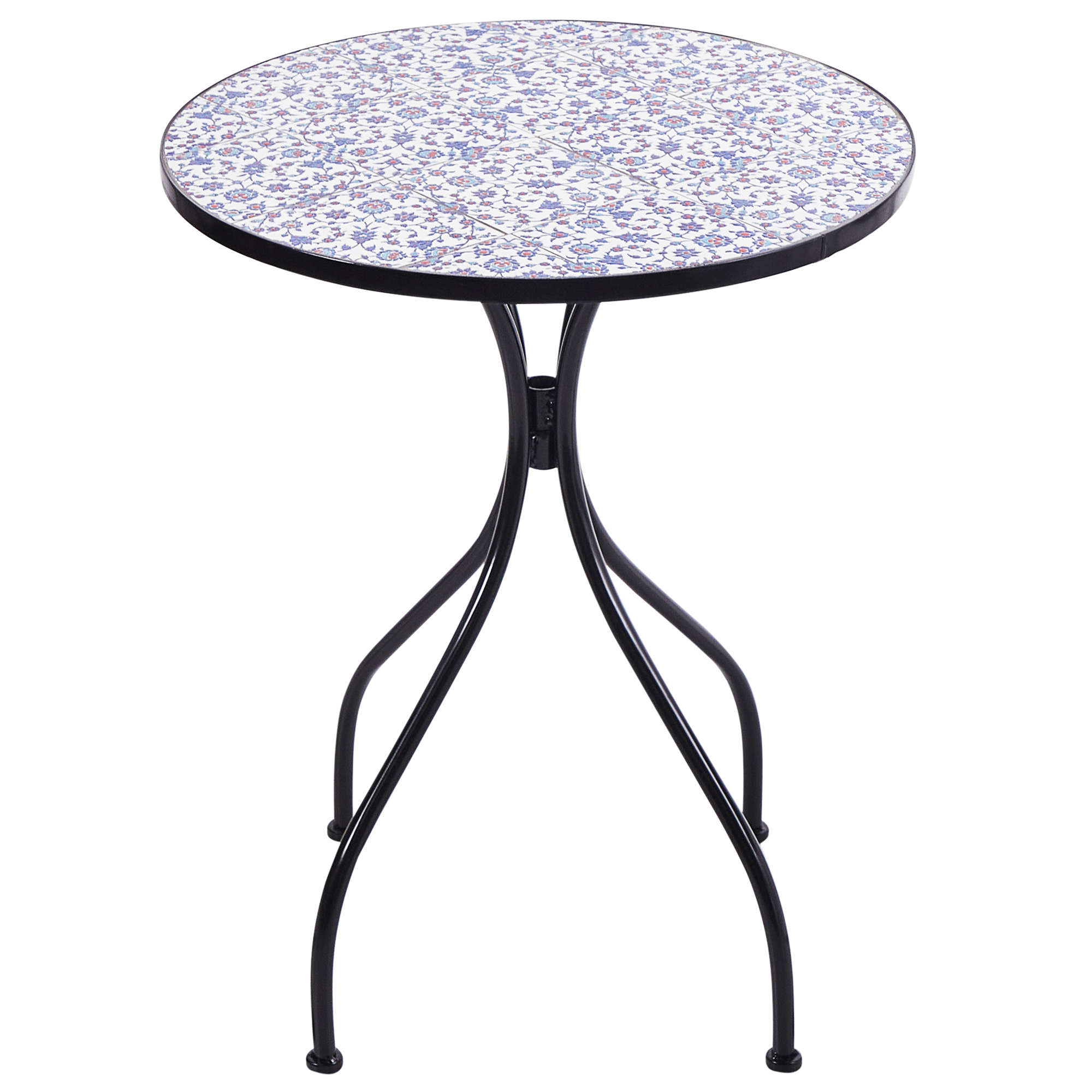 Perinteinen bistropöytä mosaiikkikuviolla. Tämä viehättävä puutarhapöytä tuo parvekkeelle tai terassille vintage-ilmettä. Pöytä on valmistettu kestävästä raudasta ja koristeltu kauniilla keraamisella mosaiikkikuviolla, tarjoten sekä kestävyyttä että hienostuneisuutta. Se on suunniteltu kestämään elementtejä, ollen samalla vaivattoman helppo ylläpitää, mikä tekee bistropöydästä täydellisen valinnan virkistävän kesäisen juoman nauttimiseen tai tapaamiseen ystävän kanssa.