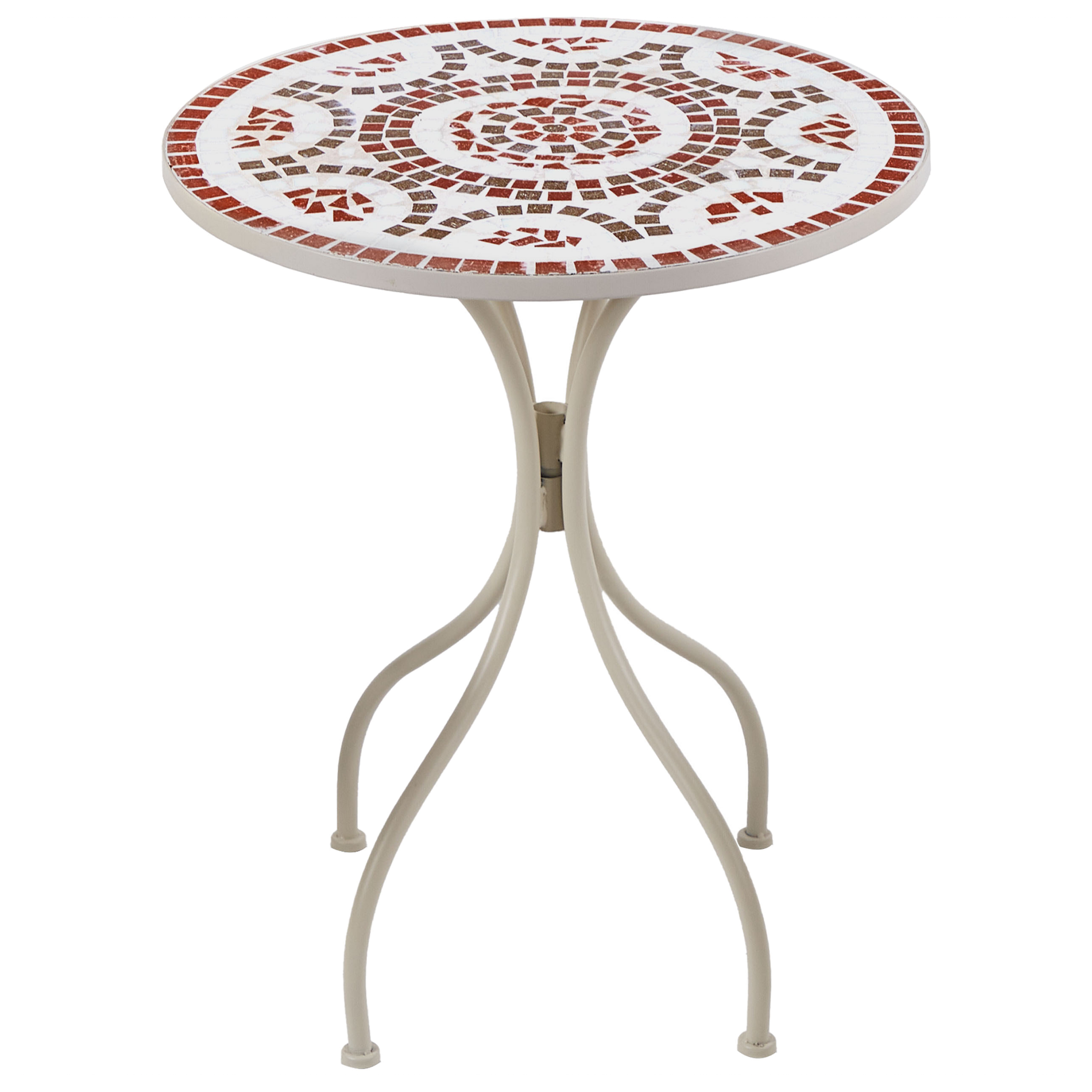 Puutarhapöytä mosaiikkikuviolla. Lisää tyylikkyyttä puutarhaan tällä viehättävällä valkoisella bistropöydällä. Kestävästä metallista valmistettu pöytä takaa vakauden ja pitkäikäisyyden. Pöytälevyssä on hienostunut mosaiikkiefekti, joka tuo hienostuneisuutta mihin tahansa ulkotilaan. Retrotunnelmansa ansiosta tämä pöytä parantaa vaivattomasti terassin tai puutarhan tunnelmaa. Pöytä sopii erinomaisesti sekä rentoihin että virallisiin tiloihin, ja siinä yhdistyvät esteettinen viehätysvoima ja käytännöllinen toimivuus.