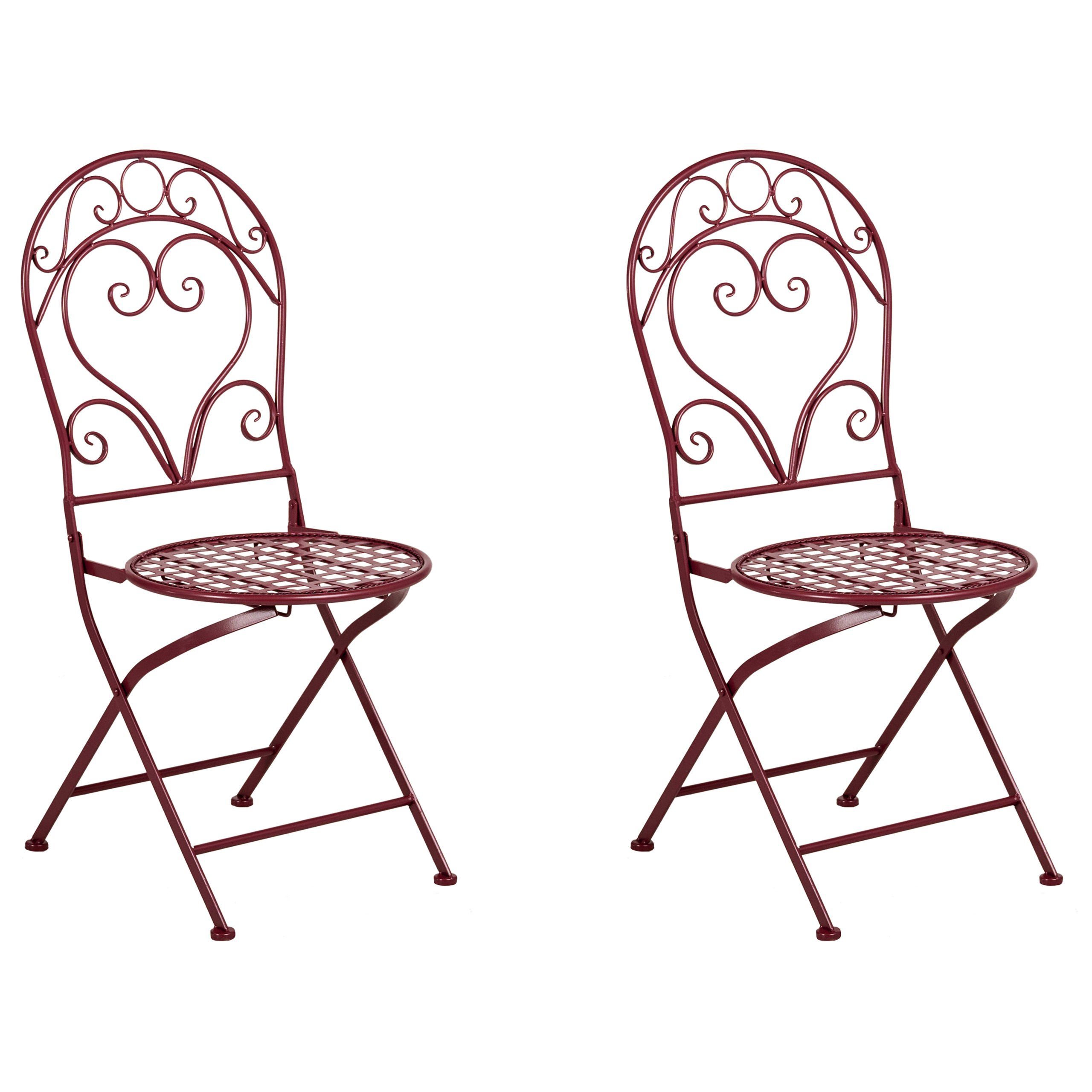 Retrotyylinen puutarhasetti kahdelle hengelle. Tämä kaunis kolmiosainen bistrosetti on suunniteltu tuomaan puutarhaan tai parvekkeelle ripaus vintage-viehätystä. Viininpunaiseksi jauhemaalatut pöytä ja kaksi tuolia on valmistettu vankasta ja kestävästä raudasta, joka on helppo puhdistaa ja pitkäikäinen. Lämmin sävy ja upea filigraanikuviointi antavat kalusteille romanttisen ilmeen. Setti sopii erinomaisesti luomaan ulkotilaan kauniin paikan, jossa voi nauttia aamupalasta tai iltateestä tyylillä.