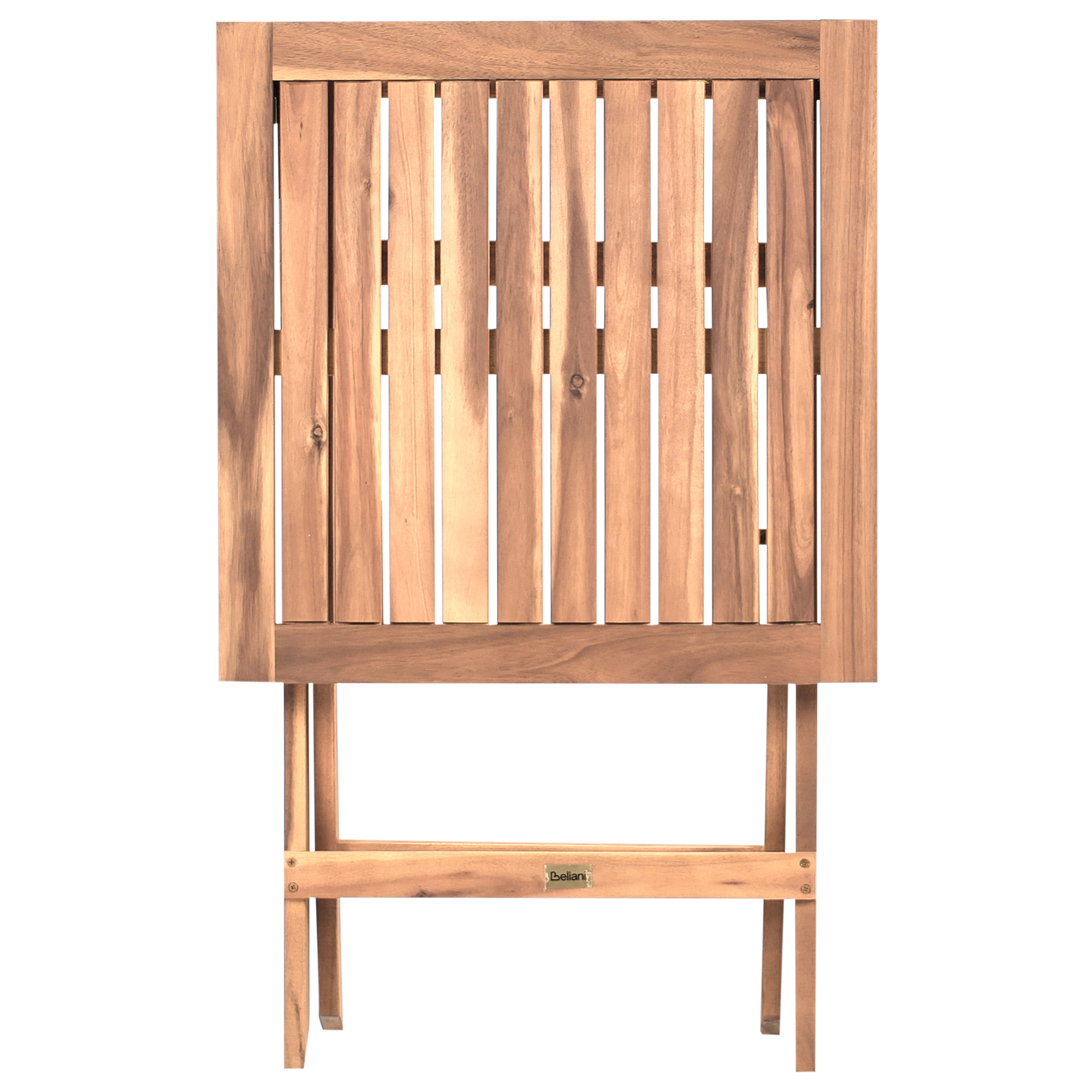Parvekkeen kokoontaitettava pöytä- ja tuolisetti. Tämä kokoontaitettava bistrosetti koostuu klassisesta nelikulmaisesta pöydästä ja kahdesta yhteensopivasta tuolista, mikä tekee siitä täydellisen pienille terasseille ja parvekkeille. Kestävästä akaasiapuusta valmistetut kalusteet takaavat pitkäikäisen vakauden ja luonnollisen eleganssin. Tilaa säästävä muotoilu mahdollistaa helpon säilytyksen ja monikäyttöisyyden, joten setti on käytännöllinen ja tyylikäs ratkaisu kompakteihin ulkotiloihin.