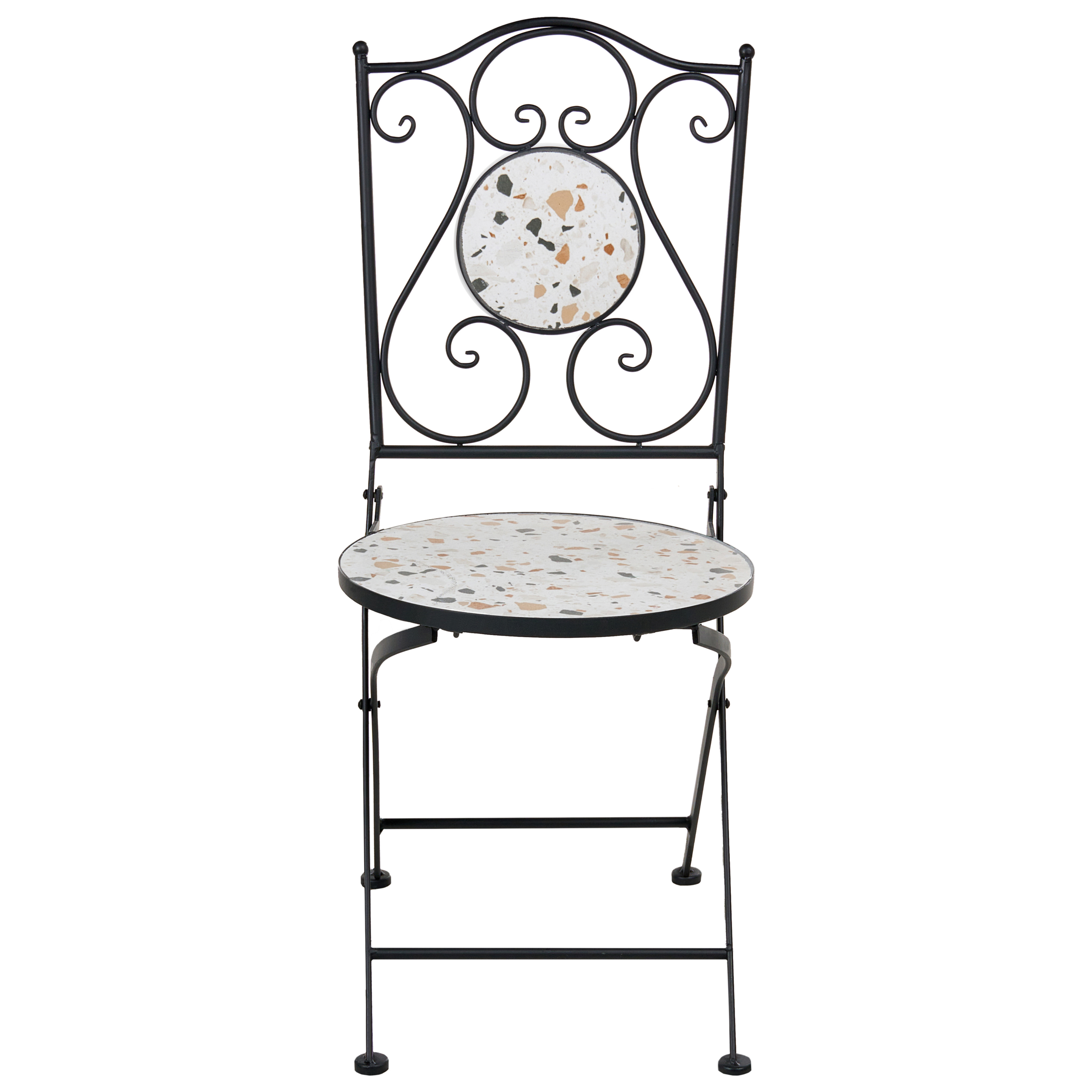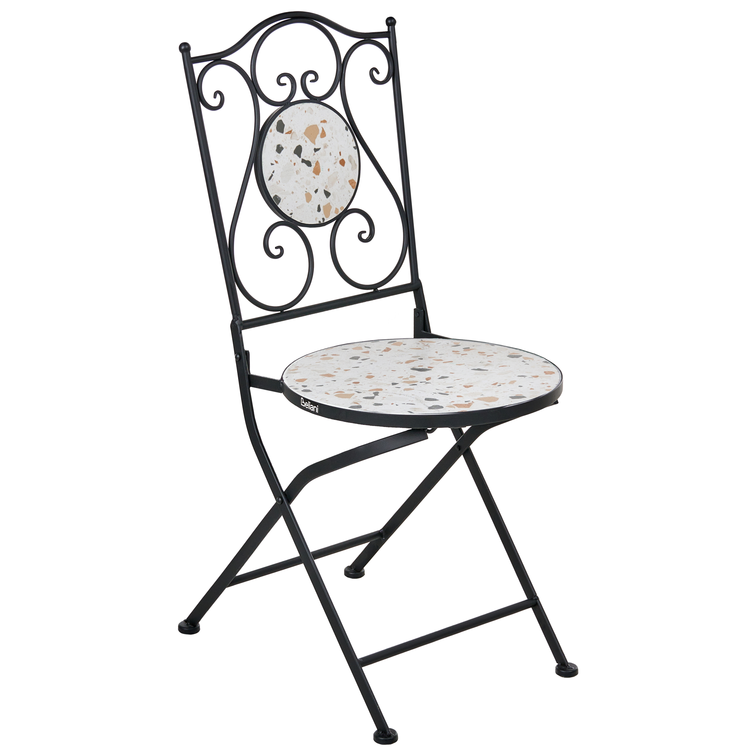 Perinteinen parvekesetti terrazzo-kuviolla. Tämä 2-istuttava setti, joka koostuu bistropöydästä ja yhteensopivista taittotuoleista, on täydellinen valinta mihin tahansa puutarhaan tai parvekkeelle, tarjoten tyylikkään ja käytännöllisen ratkaisun ulkona ruokailuun. Kestävät rautarungot sekä koristeelliset keraamiset istuimet ja pöytätaso kauniilla terrazzo-kuviolla yhdistävät ajattoman muotoilun ja toiminnallisuuden. Kompaktin kokonsa ansiosta setti sopii erinomaisesti pienempiin ulkotiloihin, ja sen monipuolinen ilme täydentää mitä tahansa tyyliä.