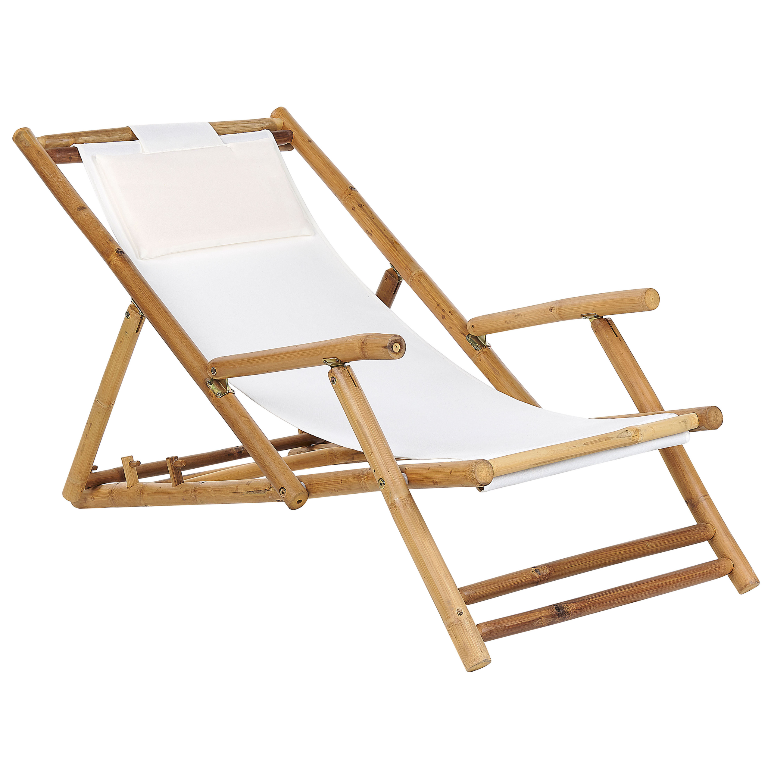 Kokoon taittuvat aurinkotuolit ja pieni pöytä. Tämä kahdesta aurinkotuolista ja pienestä puutarhapöydästä koostuva bistrosetti on täydellinen lisä parvekkeelle tai puutarhaan. Vahvasta, vaaleasta bambusta valmistetut tuolit ja pöytä kestävät UV-säteilyä. Kokoontaitettavan ominaisuutensa ansiosta kalusteet ovat helposti varastoitavissa käyttökauden loputtua tai kun ne eivät ole käytössä. Istuimet ovat pehmeää beigeä polyesteriä ja mukana tulevat tyynyt takaavat mukavuuden. Selkänojaa on mahdollista säätää jopa kolmeen eri asentoon. Luonnollisen ilmeensä ansiosta bistrosetti sopii täydellisesti rustiikkisiin tai boho-tyylisiin tiloihin.