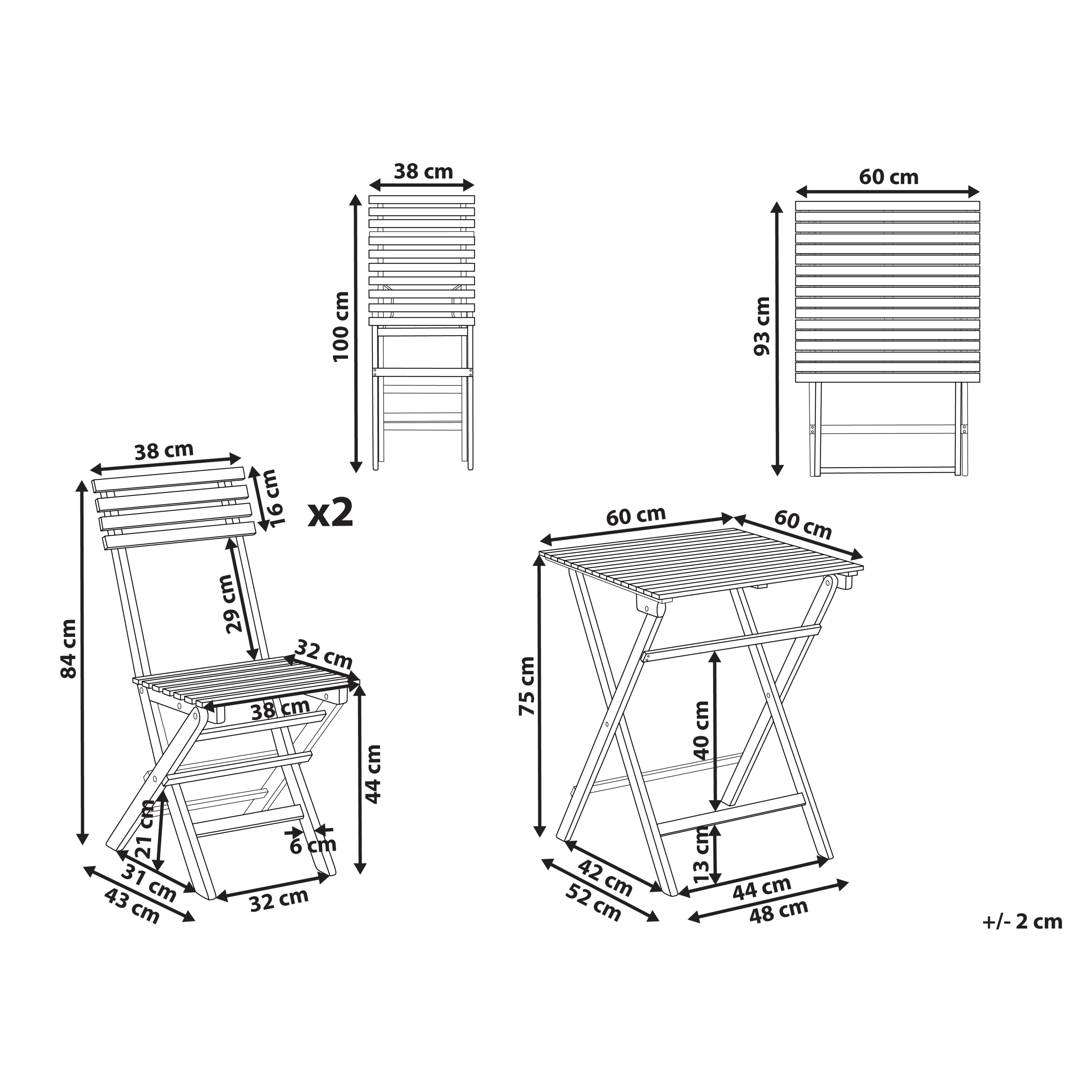 Bistrosetti taitettava SOLAROLO sertifioitu akaasia Ruskea