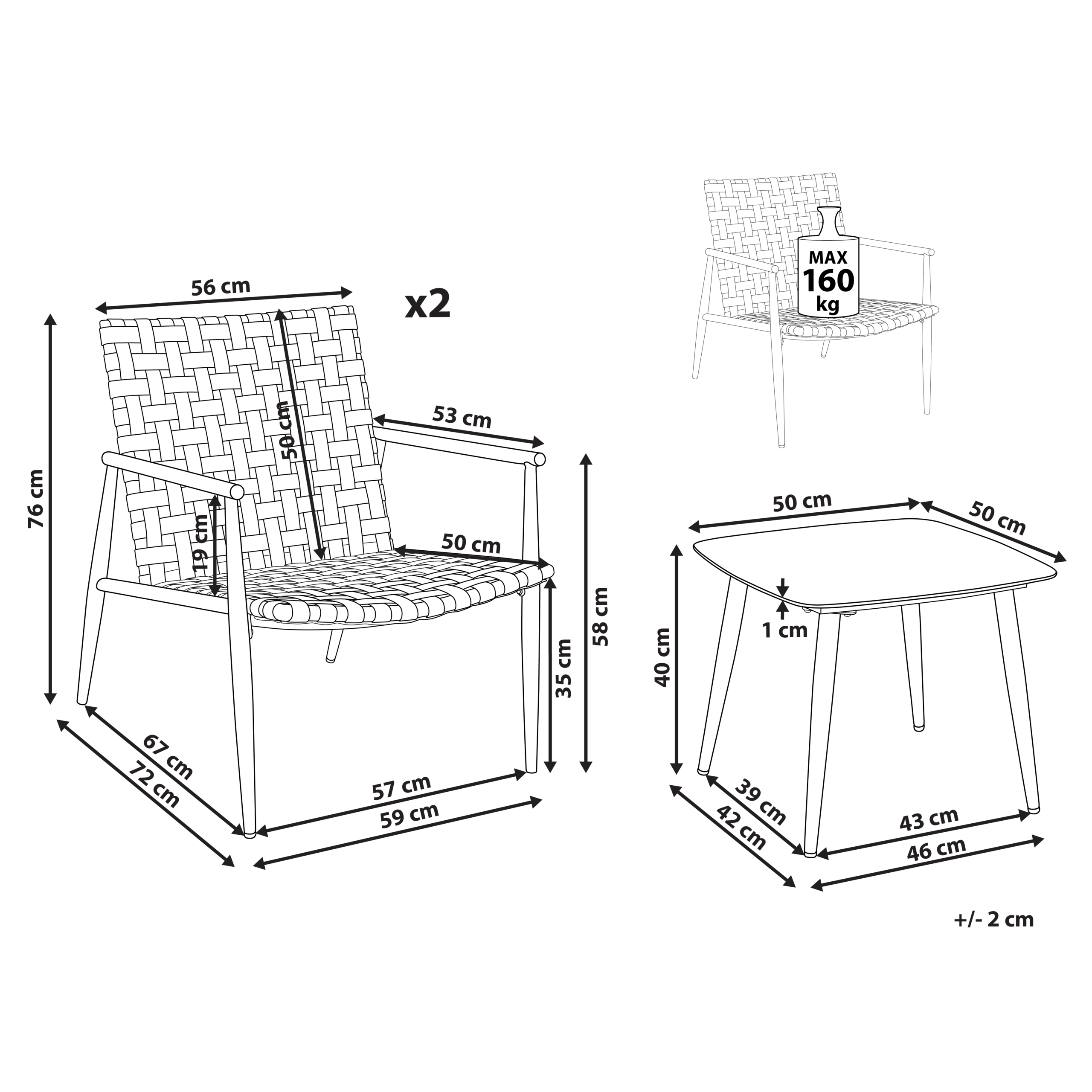 Hintaan sisältyy: 2 x Tuoli, 1 x Sohvapöytä