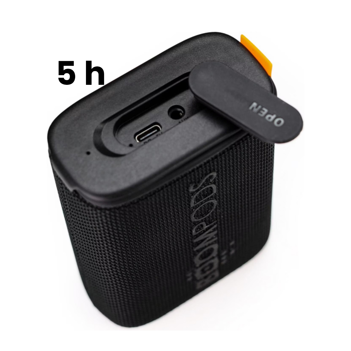 Beachboom on vankka, vedenpitävä IPX7-Bluetooth-kaiutin, joka on valmistettu merestä talteen otetuista materiaaleista (TIDE). Sen 5 W:n kuljettaja, jossa on passiivinen jäähdytin, tehostaa bassoa. Bluetooth 5.3 vakaata yhteyttä varten, sisäänrakennettu mikrofoni puheluita varten ja hihna, jolla voit ottaa sen mukaan minne tahansa. 1200 mAh:n akku kestää noin 5 tuntia 70 %:n käyttöasteella ja latautuu noin 3 tunnissa USB-C:n kautta.