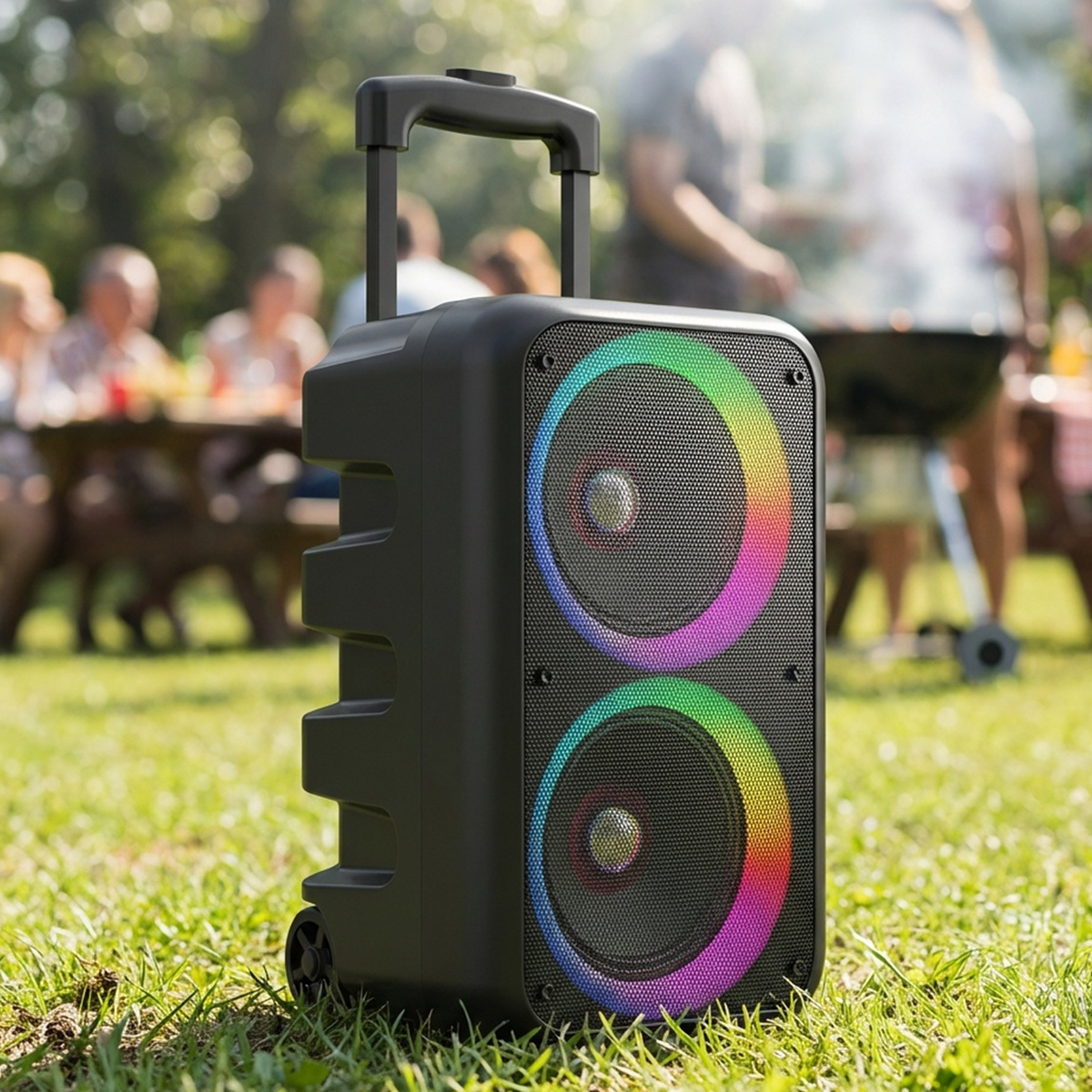 Bluetooth-kaiutin, jossa yhdistyvät teho ja liikkuvuus kahden 5 W:n kaiuttimen ja 2400 mAh:n akun ansiosta. Se tarjoaa jopa 5 tunnin kuunteluajan ja yli 48 tunnin valmiusajan. Vakaa Bluetooth-yhteys jopa 10 metrin päähän. Mukana mikrofoni sisä- ja ulkokäyttöön, täydellinen karaokeen ja juhliin.