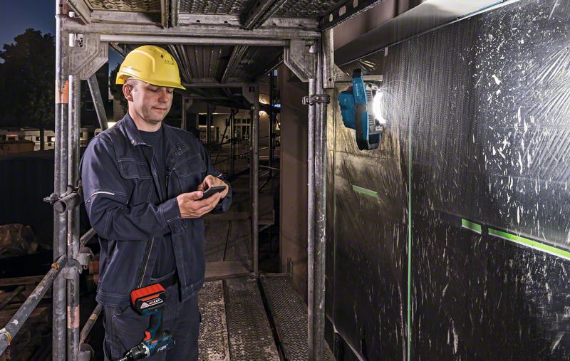 - Etäohjaus: Voit hallita valoa ja kirkkautta älypuhelimella Bosch Toolbox -sovelluksen kautta.