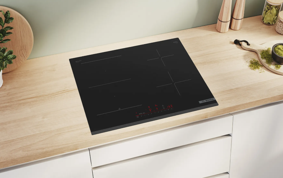 Bosch PVS63KHC1Z on 60 cm leveä induktiotaso, jonka CombiZone-toiminto mahdollistaa kahden keittoalueen yhdistämisen yhdeksi suureksi alueeksi – täydellinen suurille padoille. DirectSelect-ohjaus tekee tehon säädöstä intuitiivista. PerfectFry Plus -sensori estää ruoan palamisen pohjaan säätämällä lämpötilaa automaattisesti. Wi-Fi-yhteys (Home Connect) mahdollistaa etävalvonnan ja liesituulettimen ohjauksen (Hob2Hood-yhteensopiva). Tyylikäs viistetty etureuna.