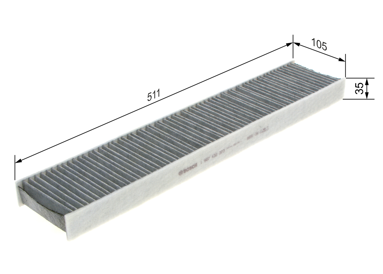 Aktiivihiilisuodatin on olennainen osa jokaista ajoneuvoa, joka huolehtii matkustamon ilman puhtaudesta. Tässä tuotteessa on moderni muotoilu, jossa käytetään aktiivihiiltä, joka neutraloi tehokkaasti epämiellyttävät hajut ja poistaa kemialliset epäpuhtaudet ja siitepölyn, jotka voivat tunkeutua sisätiloihin. Suodatin, jonka pituus on 511 mm, leveys 105 mm ja korkeus 35 mm, sopii täydellisesti ajoneuvojen vakiosuodatinkoteloihin. Korkealaatuiset materiaalit takaavat pitkäikäisen suorituskyvyn ja luotettavan suojan. Tämä on suodattimen perusversio, jonka tuotenumero on 1987432073, ja se varmistaa erinomaisen tasapainon laadun ja kohtuuhintaisuuden välillä. Luotettava ja helppo asentaa, tämä suodatin varmistaa mukavuuden ja turvallisuuden jokaisella matkalla.