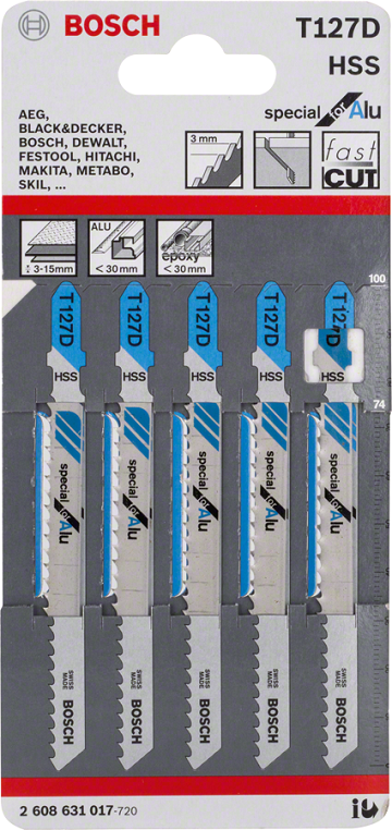 Erikoisterä alumiinin ja muiden ei-rautametallien sahaamiseen. T 127 D:n suuret hammasvälit estävät terän tukkeutumista pehmeää metallia sahatessa. Toimii hyvin myös muoveilla.
