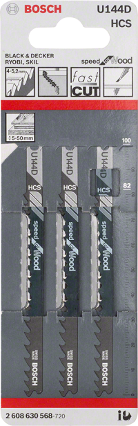 Nopeaan puun katkaisuun tarkoitettu terä U-vartisille koneille. U 144 D:n suuri hammasväli ja haritetut hampaat purevat puuhun aggressiivisesti, mahdollistaen erittäin nopean etenemisen.