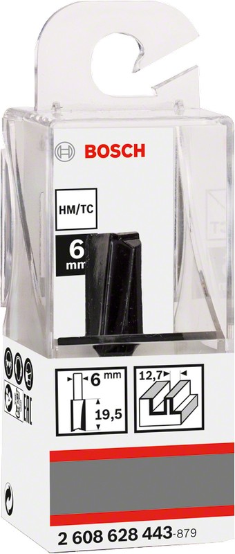 Perusmallinen suora jyrsin (Standard for Wood) 6 mm karalla varustettuihin koneisiin. Ihanteellinen 12,7 mm leveiden urien jyrsimiseen.