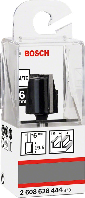 Leveä urajyrsin (19 mm) materiaalin nopeaan poistoon ja leveiden urien tekoon. 6 mm varsi.