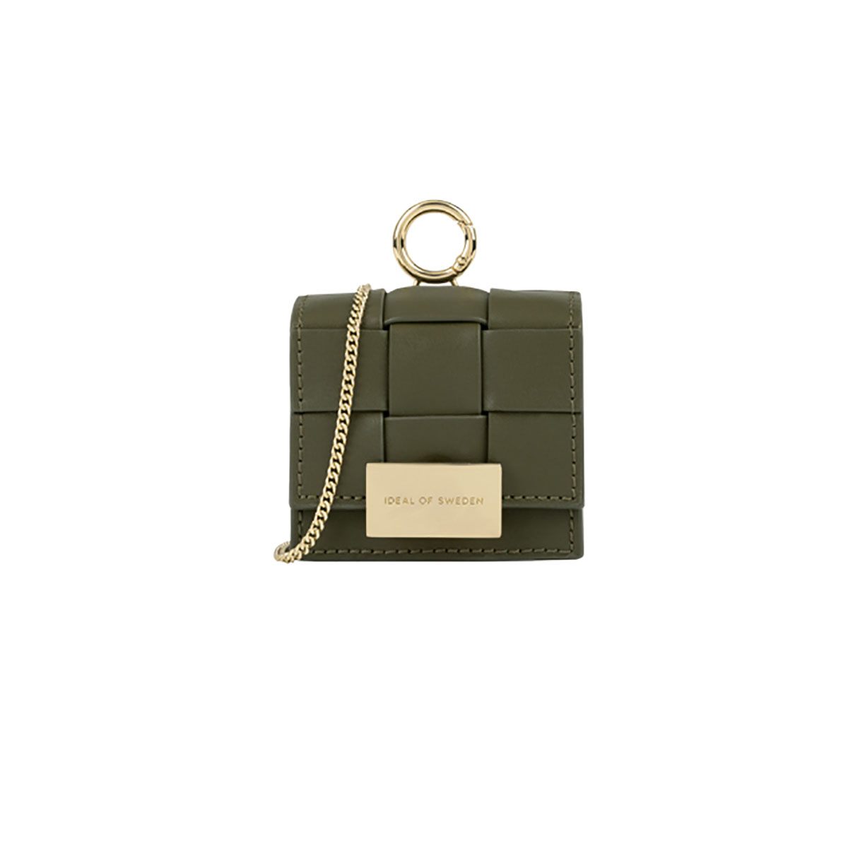 Tämä Ideal of Swedenin punottu minilaukku on todellinen muotihelmi, jossa yhdistyvät tyylikkyys ja toiminnallisuus. Siihen mahtuu minkä tahansa sukupolven AirPodit, huulipunasi, avaimesi tai mikä tahansa muu pieni esine. Laukun mukana tulee irrotettava 105 cm:n kultaketju, joten voit käyttää sitä olan yli tai vartalon yli. Se on käsin kudottu hienostuneen, ylellisen ulkonäön vuoksi.
