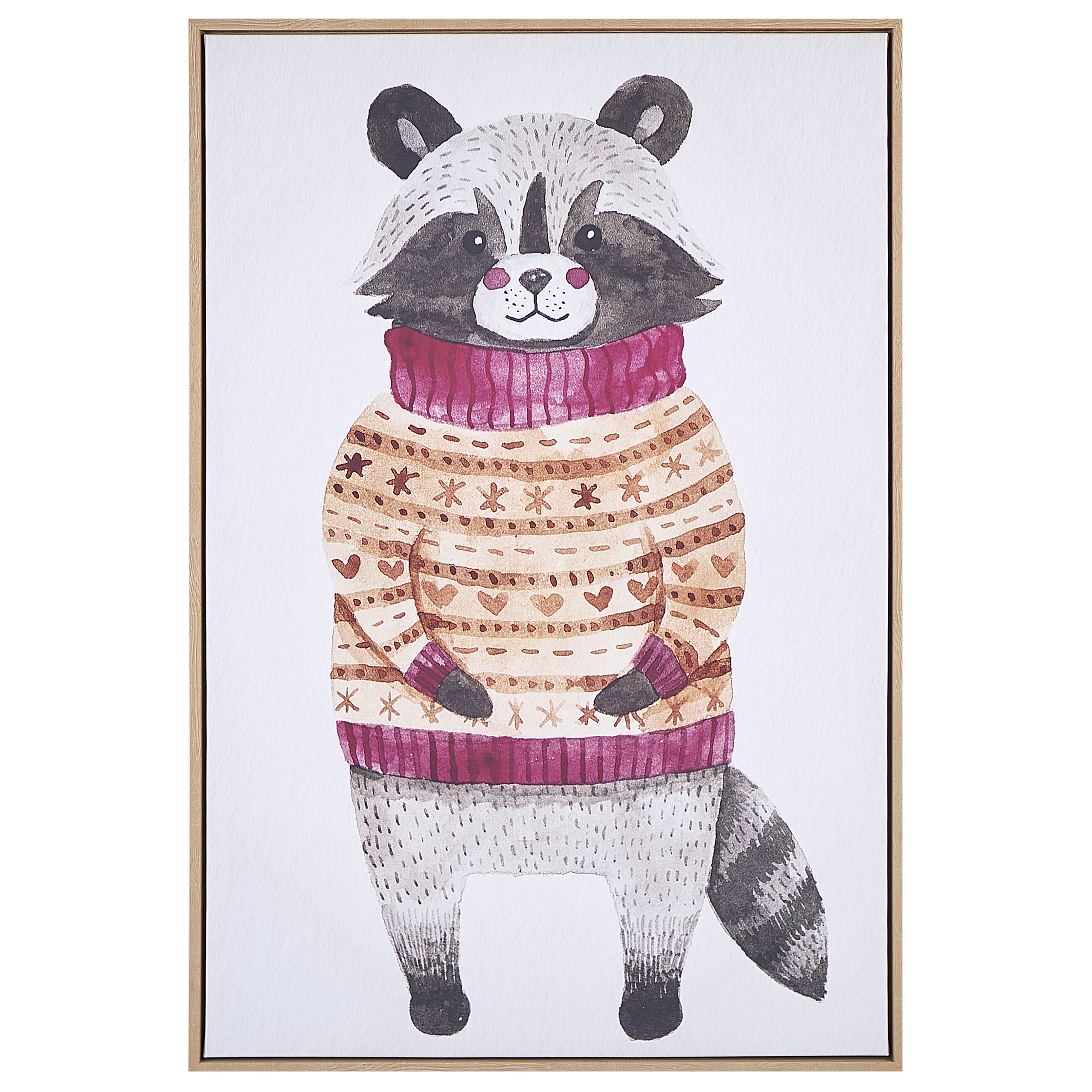 Lasten kehystetty taulu. Tuo lastenhuoneeseen iloista ja omalaatuista tunnelmaa tällä viehättävällä canvas-taululla. Teos huokuu lämpöä ja leikkisyyttä pehmeillä väreillään ja motiivillaan, joka kuvaa mukavaan villapaitaan pukeutunutta pesukarhua. Laadukkaalle kankaalle painettu ja tyylikkääseen MDF-kehykseen sijoitettu teos herättää lapsesi luovuuden ja mielikuvituksen.