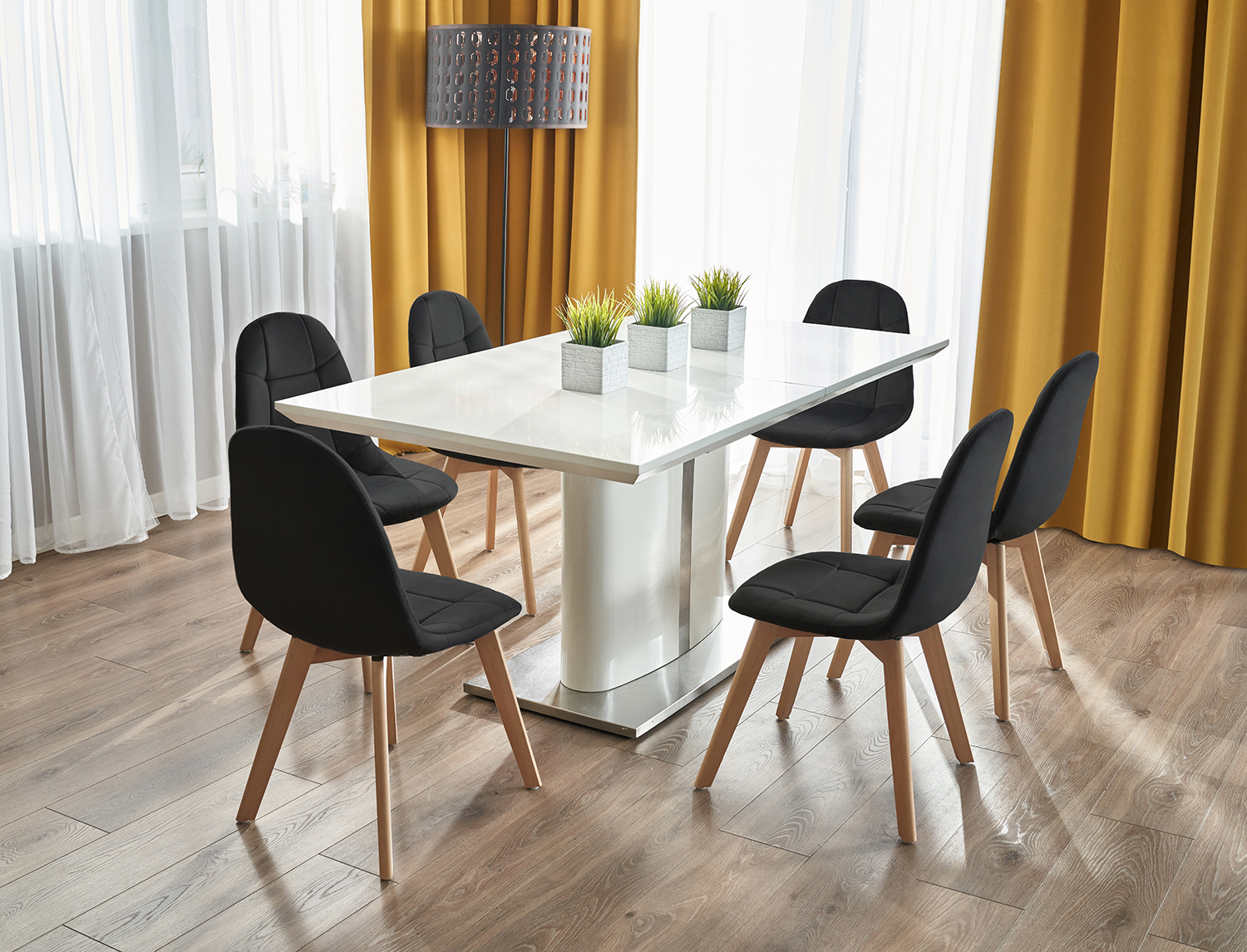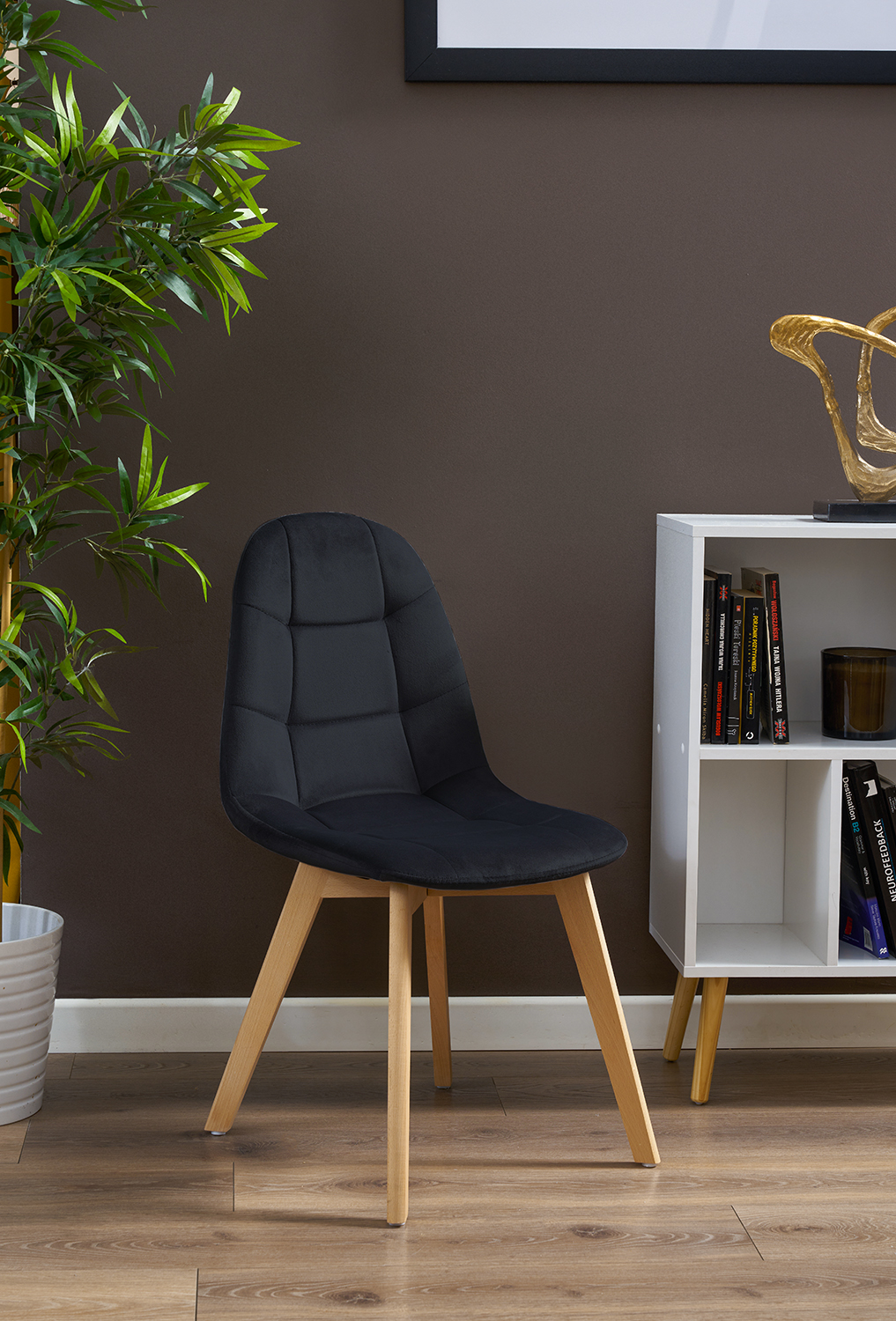 COLIN-tuoli viittaa muotoilullaan selvästi skandinaavisiin trendeihin. Siinä on pehmeä ja kestävä istuin, joka on päällystetty samettisella velourilla. Tuoli on pehmustettu paksulla täytekerroksella, ja sen selkänojalle on ominaista mukava profilointi, joka tukee selkää täydellisesti. Vaaleasta pyökistä valmistetut puiset jalat takaavat vakauden ja kestävyyden.
