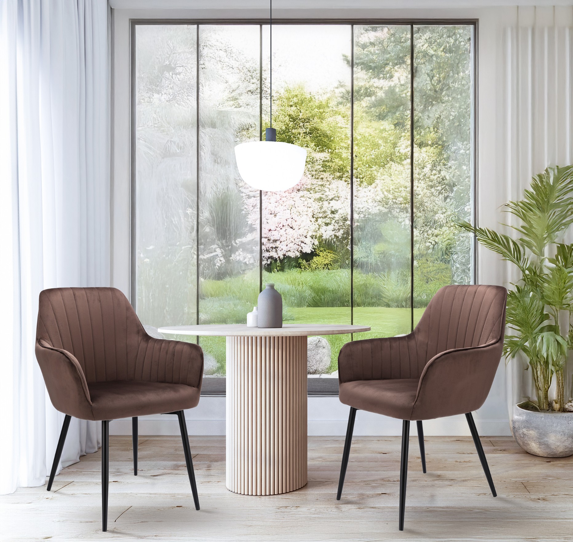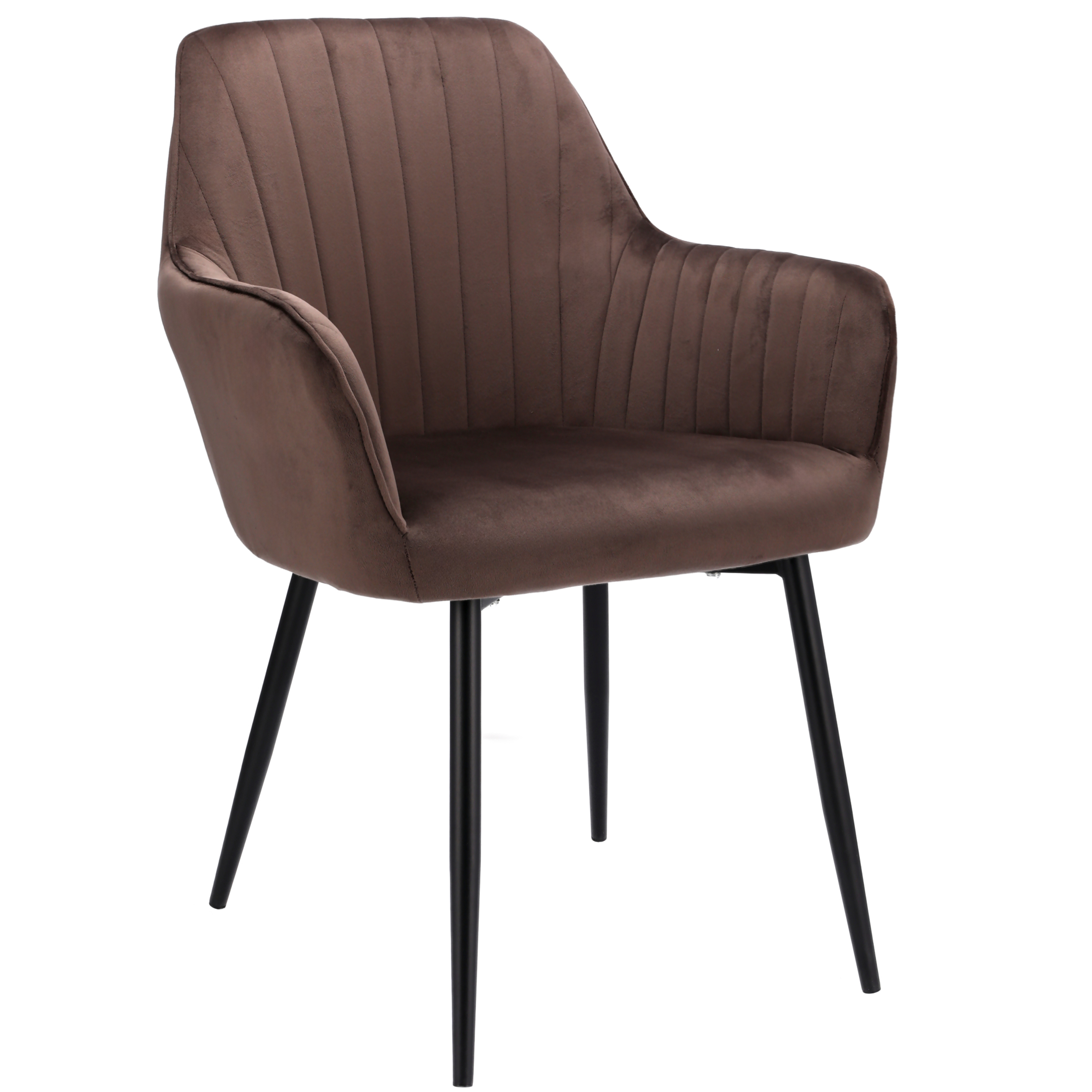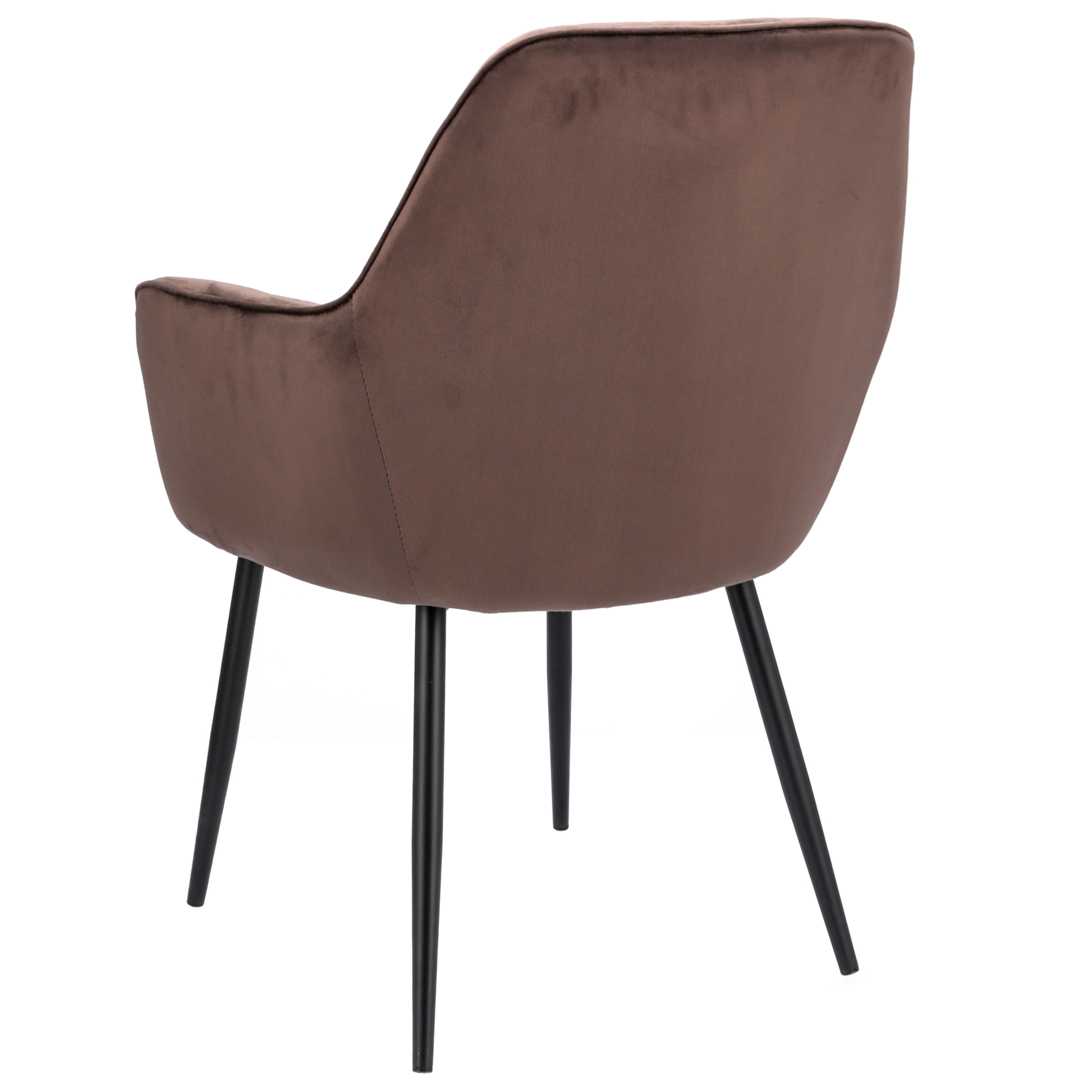 Massiivinen, samettinen tuoli on varustettu pehmeällä istuimella ja korkealla, koristeellisesti tikkatulla selkänojalla. Koko tuolin ulkonäkö on kevyt kapeiden mustien jalkojen ansiosta, jotka antavat visuaalista keveyttä ja samalla tarjoavat täydellisen vakauden. Selkänojan ja käsinojien korkeus sekä pehmeys tekevät tuolista uskomattoman mukavan.
