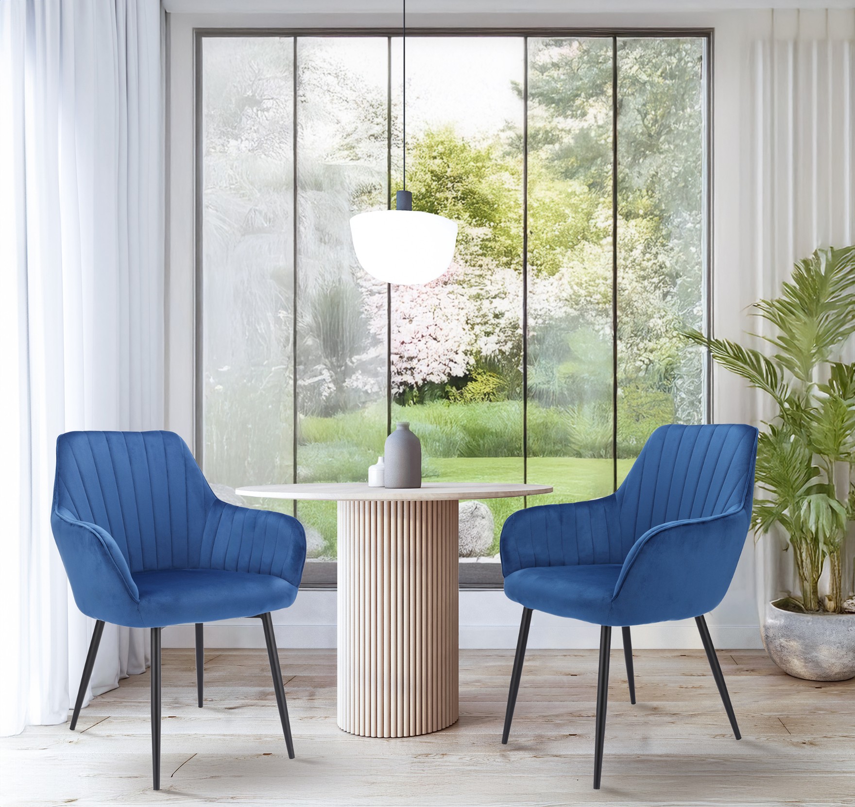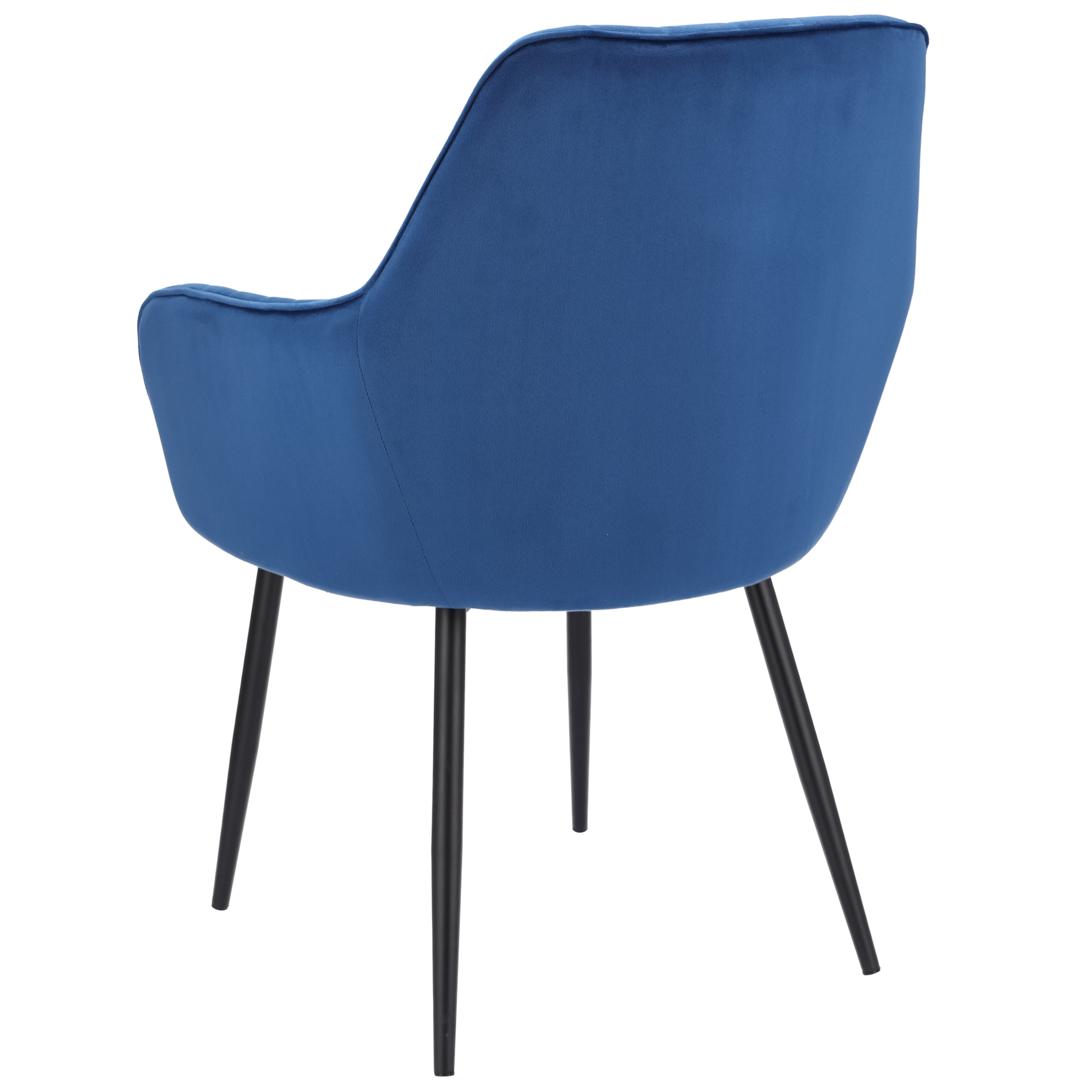 CORA-tuoli yhdistää klassisen tyylin ja modernin eleganssin täydellisesti. Massiivinen mutta samettisen pehmeä istuin tarjoaa ensiluokkaista mukavuutta, ja korkea, koristeellisesti tikattu selkänoja lisää tuolin arvokasta ilmettä. Kapeat mustat metallijalat luovat visuaalista keveyttä ja takaavat samalla täydellisen vakauden. Selkänojan ja käsinojien ergonominen muotoilu tekee tuolista ihanteellisen pitkillekin istumishetkille.