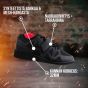 Suojaus loukkaantumisilta: Jämäkkä rakenne suojaa jalkojasi loukkaantumisilta, erityisesti kun käsittelet raskaita painoja.