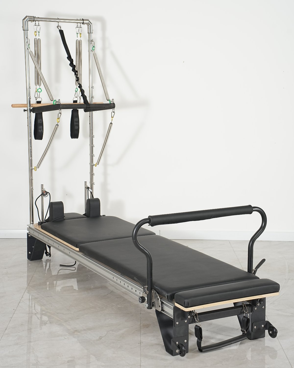 Mukana ovat taljapyörät, työntötanko sekä useita säädettäviä kiinnityspisteitä. Ihanteellinen nykyaikaisiin Pilates-studioihin tai tiloihin, joissa tarvitaan helposti liikuteltavaa välineistöä, tämä malli tarjoaa erinomaisen hinta–laatusuhteen ja premium-tason viimeistelyn.