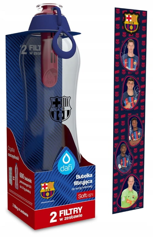 Dafi SOFT 0,7 litran suodatinpullo, alkaenrajoitettu erä FC Barcelona, on yhdistelmä toiminnallisuutta ja tyyliä, joka on omistettu jalkapallofaneille ja terveelliselle elämäntavalle. Varustettu kahdella hiilisuodattimella, se tarjoaa herkullista, suodatettua vettä samalla kun se näyttää yhden maailman ikonisimman jalkapalloseuran harjan ja värit.