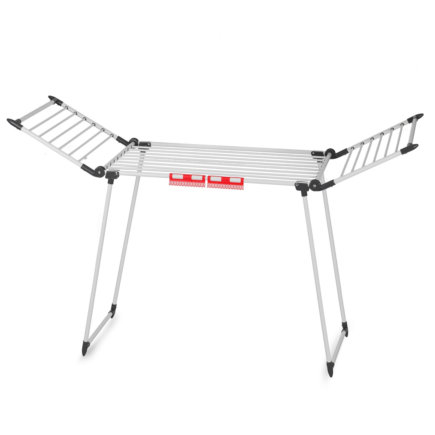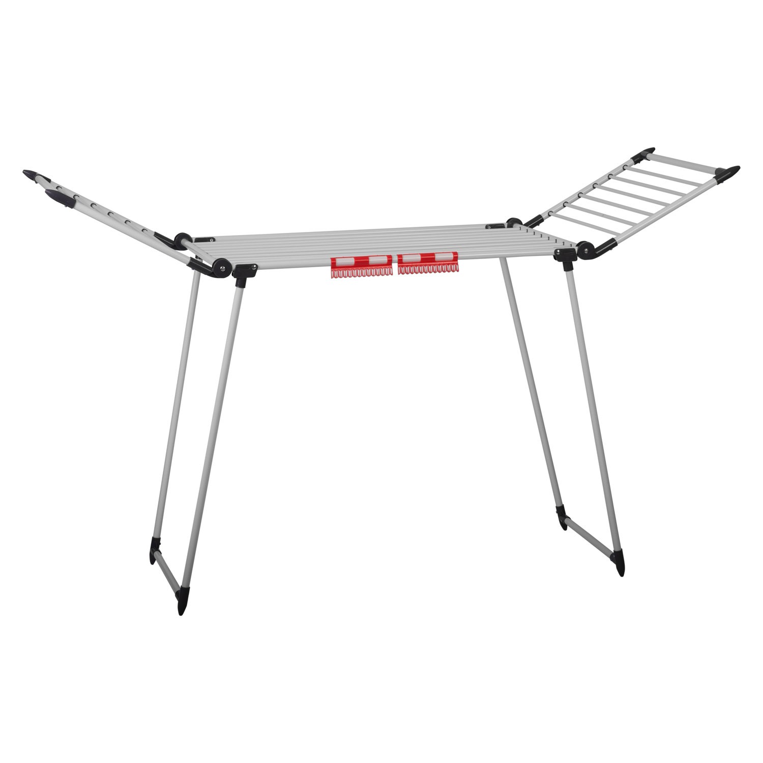 Pyykinkuivaustelineen puolat on sijoitettu riittävän etäälle toisistaan, jotta ilma kiertää hyvin ja pyykki kuivuu vapaasti.