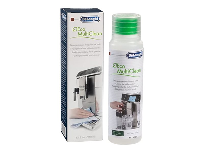**De'Longhi Eco MultiClean (DLSC550)** on erikoisneste, joka on suunniteltu kahvikoneiden puhdistukseen ja huoltoon. Se on välttämätön tuote, jolla varmistetaan maidon höyrytysjärjestelmän, cappuccinatore-suuttimien ja muiden maitojäämien kanssa tekemisissä olevien osien perusteellinen puhdistus.