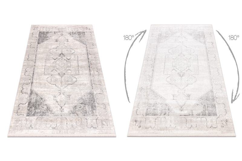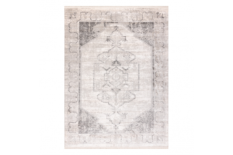 DISTIN 0107B harmaa / vaaleanharmaa / valkoinen moderni matto - Ornamentti, kehyskuviolla vintage, 120x170 cm