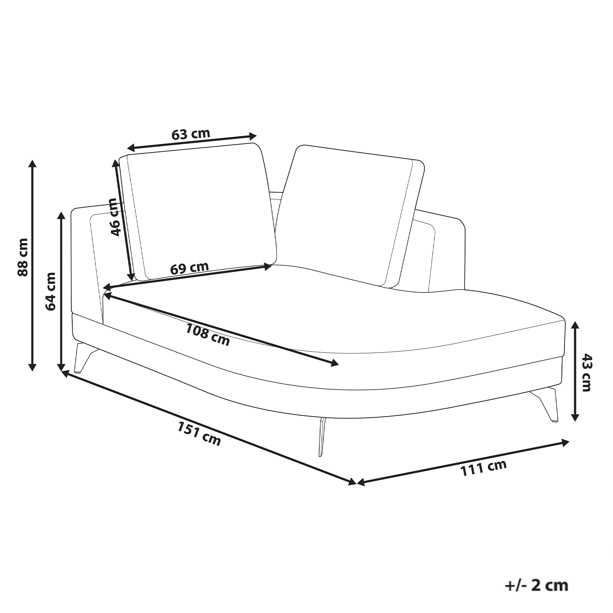 Istuimen korkeus: 43 cm