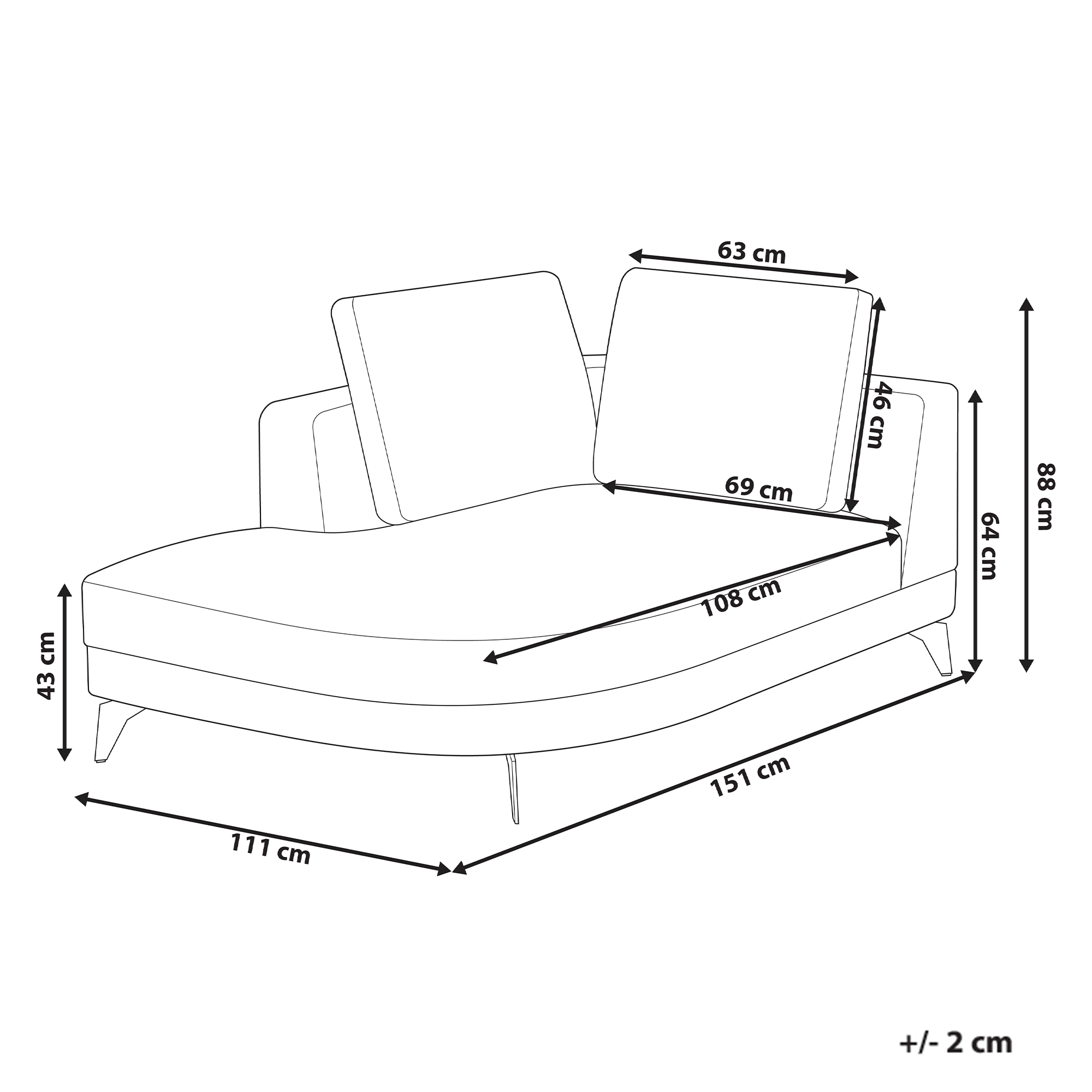 Istuimen korkeus: 43 cm