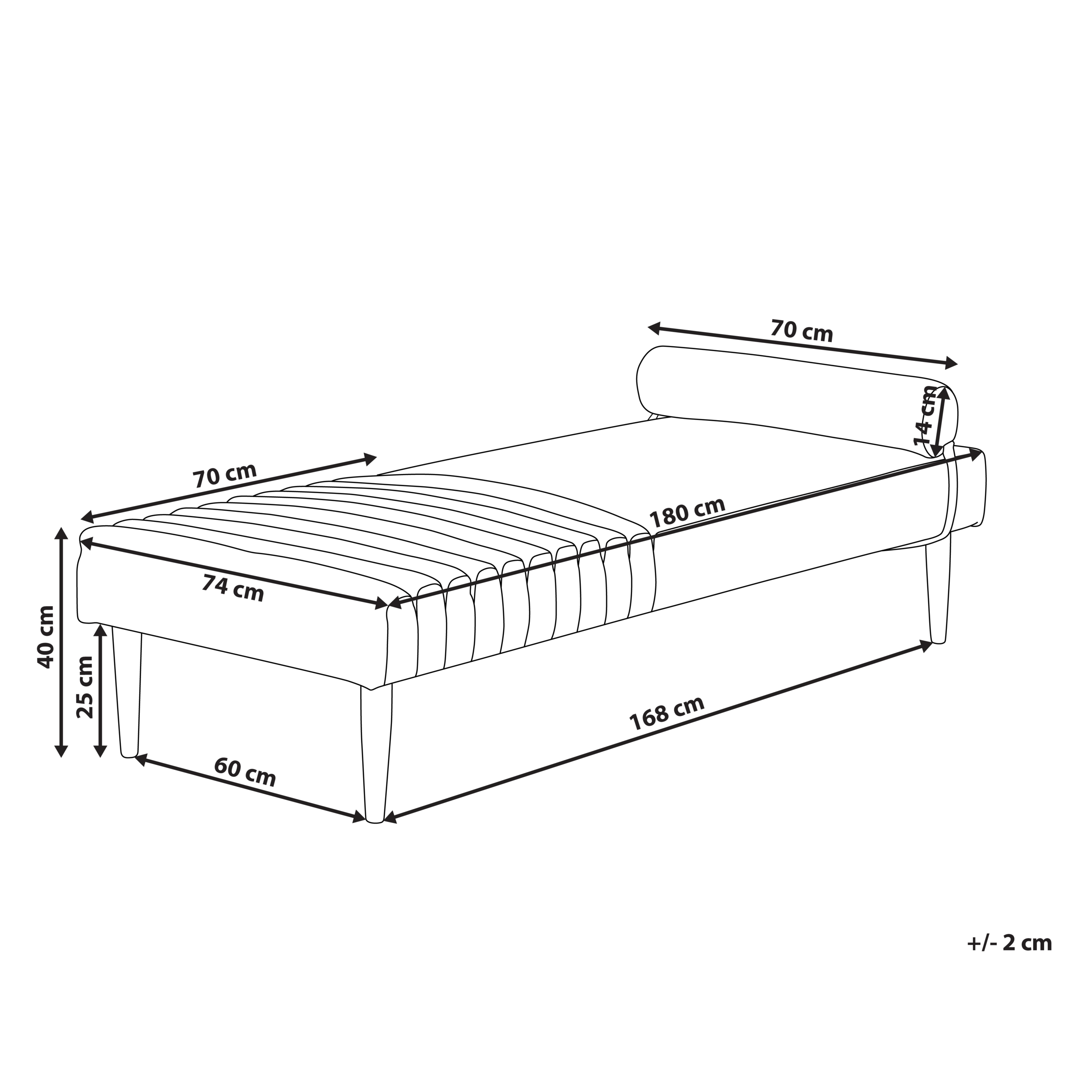 Moderni makuutuoli koristetyynyllä. Tämä modernia ja minimalistista muotoilua yhdistelevä divaani on loistava lisä mihin tahansa huoneeseen. Sen laadukasta ja miellyttävän tuntuista polyesteriverhoilua täydentävät tyylikkäät tuftaukset sekä yhteensopiva koristetyyny. Muotonsa ansiosta se toimii sekä yhden hengen päivävuoteena että penkkinä erilaisissa tilaisuuksissa. Sirot rautajalat tarjoavat vakautta ja pehmeä pehmustus mukavuutta.
