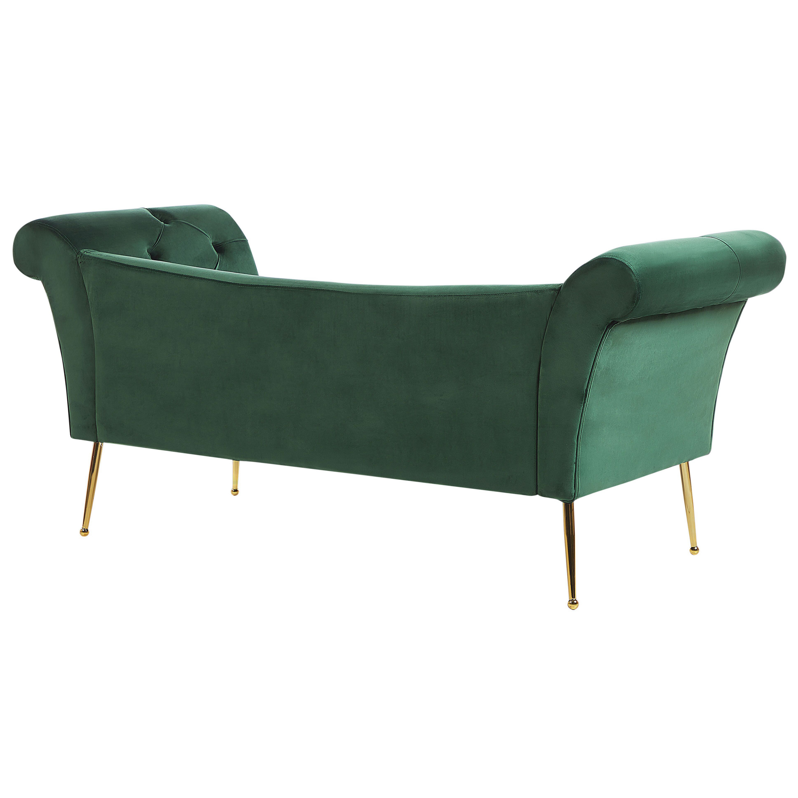 Ylellinen nappikoristeltu divaani. Tuo makuuhuoneeseen tai olohuoneeseen ripaus glamouria tällä upealla divaanilla. Miellyttävän tuntuisella samettikankaalla verhoiltu runko hurmaa ylellisellä siluetillaan, kaarevalla selkänojallaan ja pyöristetyillä käsinojillaan, jotka antavat sille chesterfield-henkisen ilmeen. Verhoilua täydentävät hienovaraiset tikkaukset ja koristenapit, ja tyylikkäät kullanväriset metallijalat korostavat sen syvää sävyä sekä takaavat vakauden. Muotoilu tarjoaa mahdollisuuden nojata kumpaan laitaan tahansa, joten divaanilla voi rentoutua monin eri tavoin. Se sopii erinomaisesti nojatuolin korvikkeeksi tai koristeelliseksi yksityiskohdaksi.