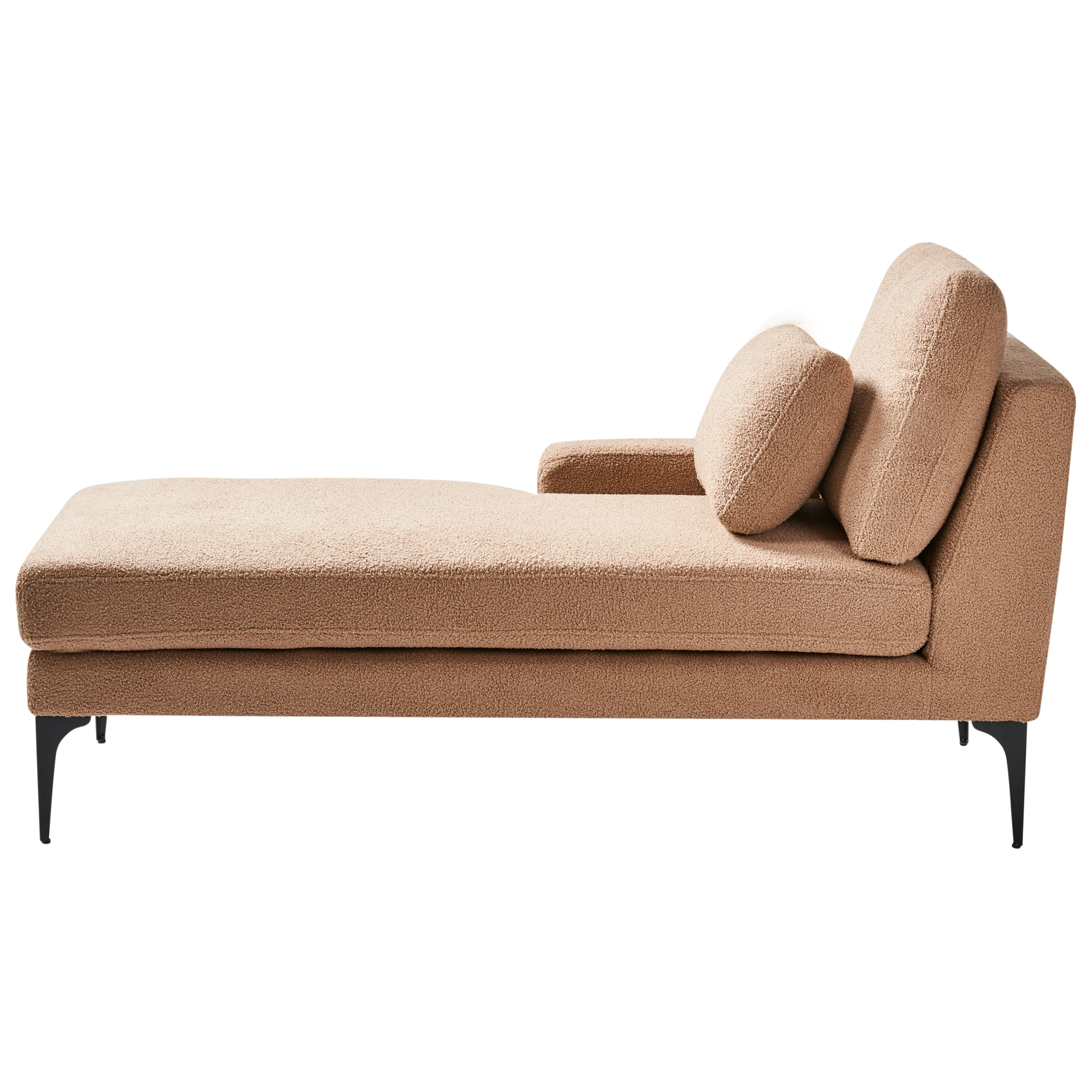 Minimalistinen divaani koristetyynyillä. Tämä äärimmäistä rentoutumista varten suunniteltu divaani tarjoaa täydellisen paikan päiväunille, kirjan lukuun tai oleskeluun ja vapaa-ajan nauttimiseen. Miellyttävän tuntuisella, pörröisellä bukleekankaalla verhoiltu ja minimalistisilla teräsjaloilla tuettu divaani tuo mukavan lepopaikan ja ripauksen modernia eleganssia mihin tahansa tilaan. Mukana tulevat koristetyynyt irrotettavilla päällisillä tekevät loikoilukokemuksesta entistäkin nautinnollisemman.