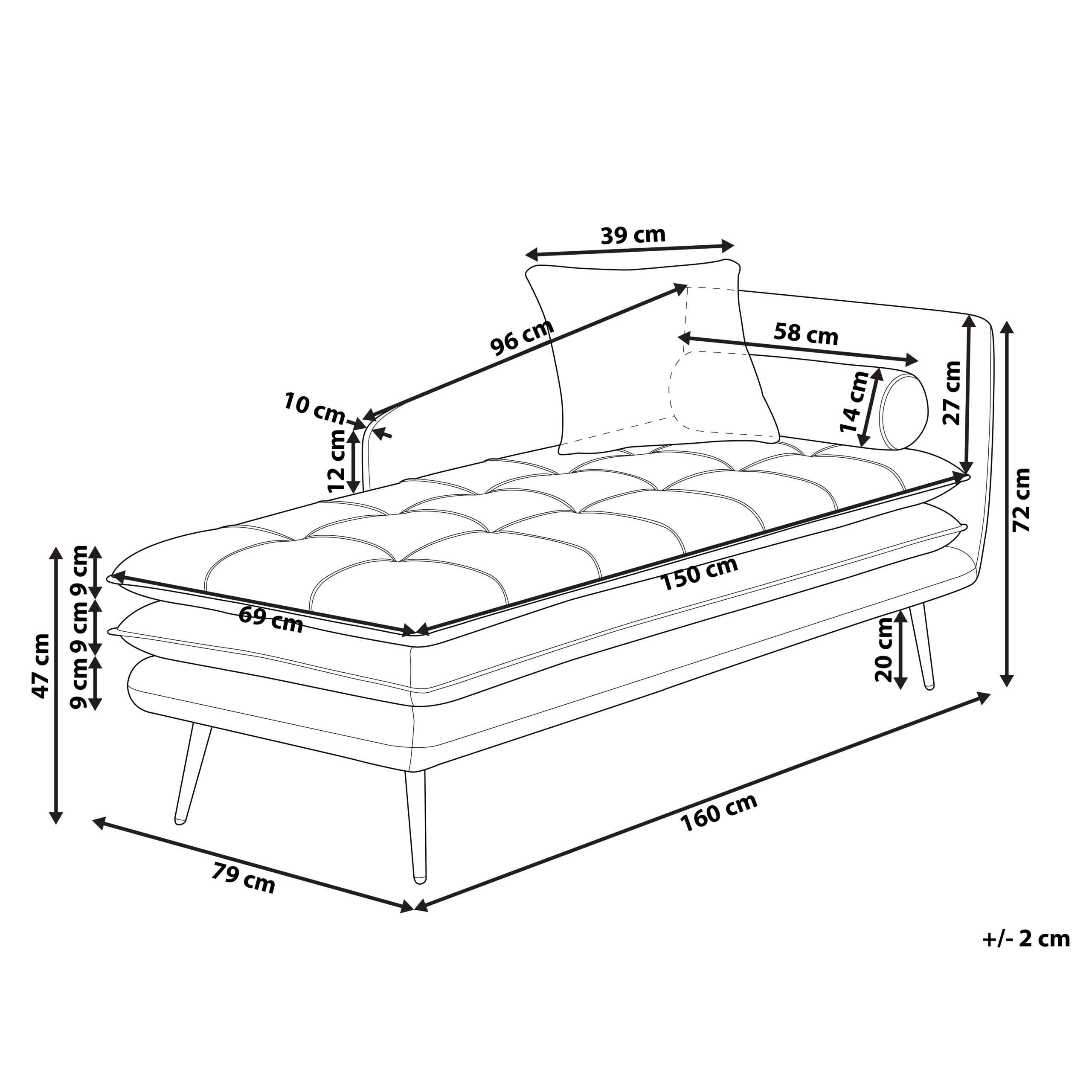 Moderni tuftattu lepotuoli. Hemmottele itseäsi pitkän päivän jälkeen tällä paksusti pehmustetulla divaanilla rentoutuen. Kestävästä eukalyptuspuusta valmistettu runko on verhoiltu miellyttävän tuntuisella sametilla, kun taas tukevat kullanväriset jalat ovat metallia. Istuimen tuftattu viimeistely tekee divaanista erottuvan ja katseita keräävän korosteen, joka sulautuu niin moderneihin kuin glamour-tyylisiinkin sisustuksiin. Divaani on varustettu kahdella erivärisellä pehmusteella maksimaalisen mukavuuden ja ainutlaatuisen ulkonäön takaamiseksi. Mukana tulevat koristetyynyt korostavat sen ilmettä.