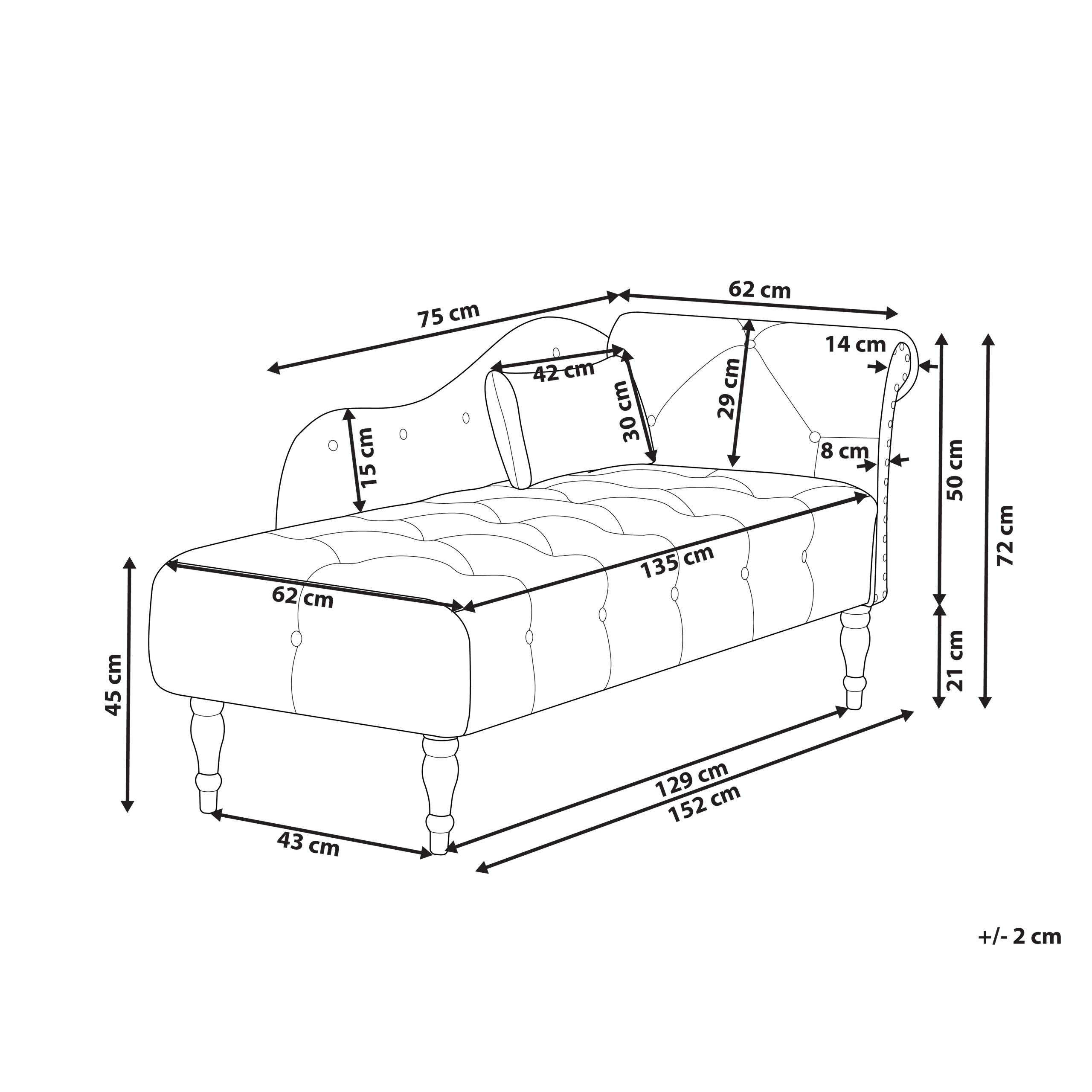 Retrotyylinen nappituftattu makuutuoli. Tämä elegantti divaani yhdistää mukavuuden ja tyylin, mikä tekee siitä upean lisän mihin tahansa olohuoneeseen. Ylellisen pehmeällä samettikankaalla verhoiltu makuutuoli sekoittaa retroa ja klassista tyyliä tuoden tilaan tyylikästä viehätystä. Sen Chesterfield-tyylinen muotoilu huokuu ajattomuutta verhoilunaulojen ja nappituftauksen ansiosta. Puiset jalat takaavat poikkeuksellisen vakauden, ja helppohoitoinen verhoilu varmistaa pitkäikäisen kauneuden. Lisäksi mukana tuleva koristetyyny tarjoaa lisämukavuutta, mikä tekee divaanilla rentoutumisesta entistä miellyttävämpää.