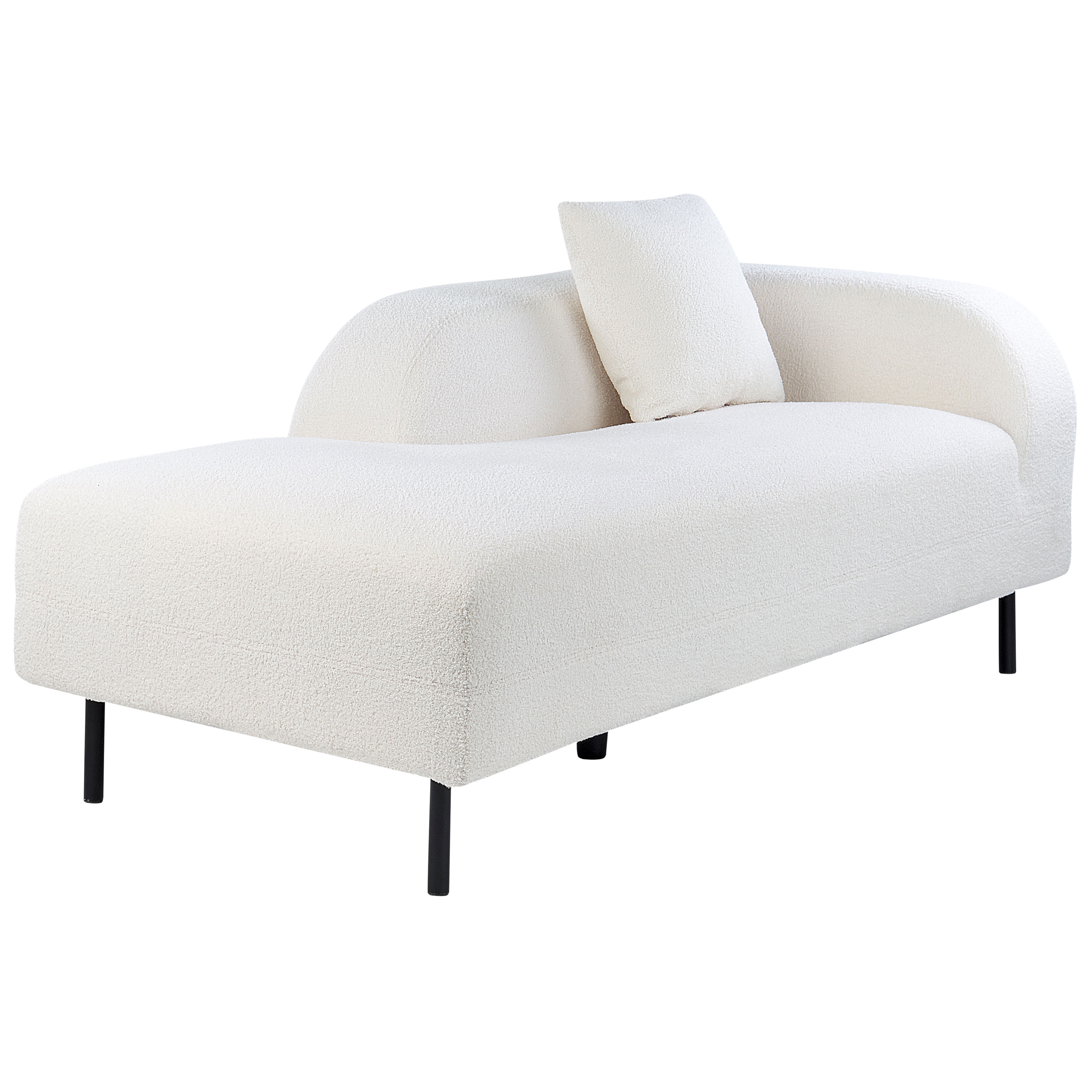 Retrotyylinen lepotuoli. Täydennä olohuoneesi sisustusta tällä erittäin tyylikkäällä divaanilla. Sen yksinkertainen, sileä muoto yhdessä kaarevien käsi- ja selkänojien kanssa muistuttaa vuosisadan puolivälin modernista tyylistä. Suorat mustat rautajalat korostavat kauniisti divaanin valkoista väriä. Divaani sopii erinomaisesti mihin tahansa moderniin olohuoneeseen tai suureen makuuhuoneeseen. Istu ja rentoudu tässä pehmeässä bukleeverhoillussa lepotuolissa.