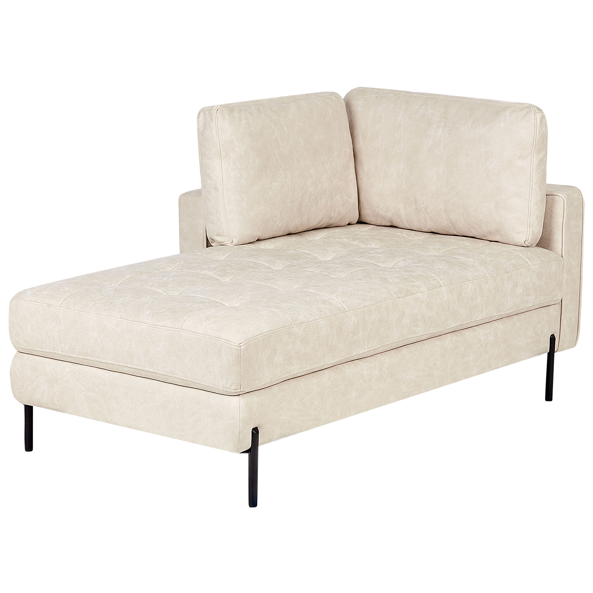 Perinteinen leposohva koristetyynyillä. Rentoudu tyylikkäästi tässä elegantissa divaanissa, joka on verhoiltu korkealaatuisella keinonahkalla, muistuttaen aitoa nahkaa, mutta on helpompi ylläpitää. Mustat metallijalat tarjoavat tukevan perustan ja muodostavat samalla kontrastin vaaleanbeigen sävyjen kanssa. Lisäksi kaksi muhkeaa koristetyynyä takaavat mukavuuden. Tämä divaani on täydellinen lisä moderniin ja perinteiseen asuintilaan.