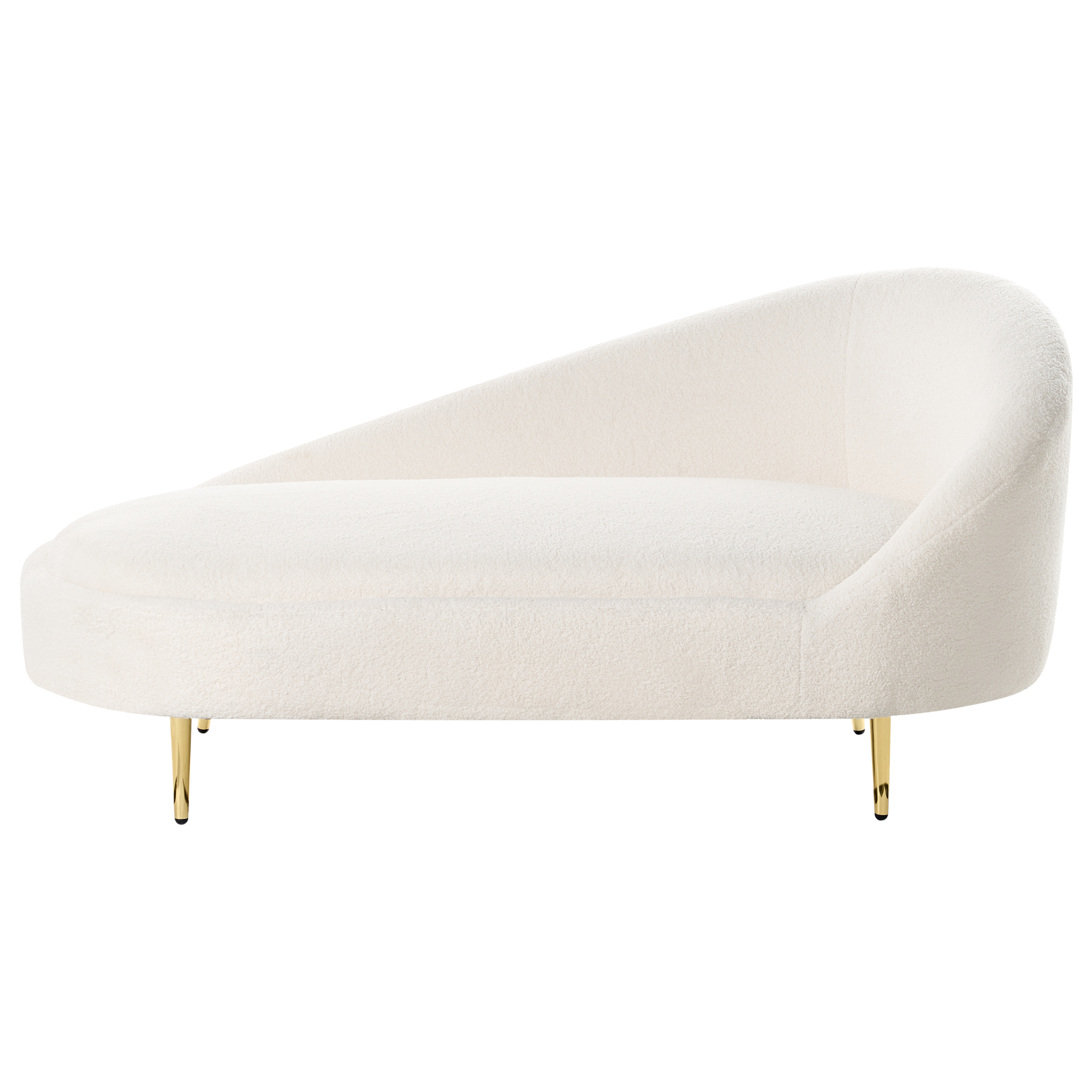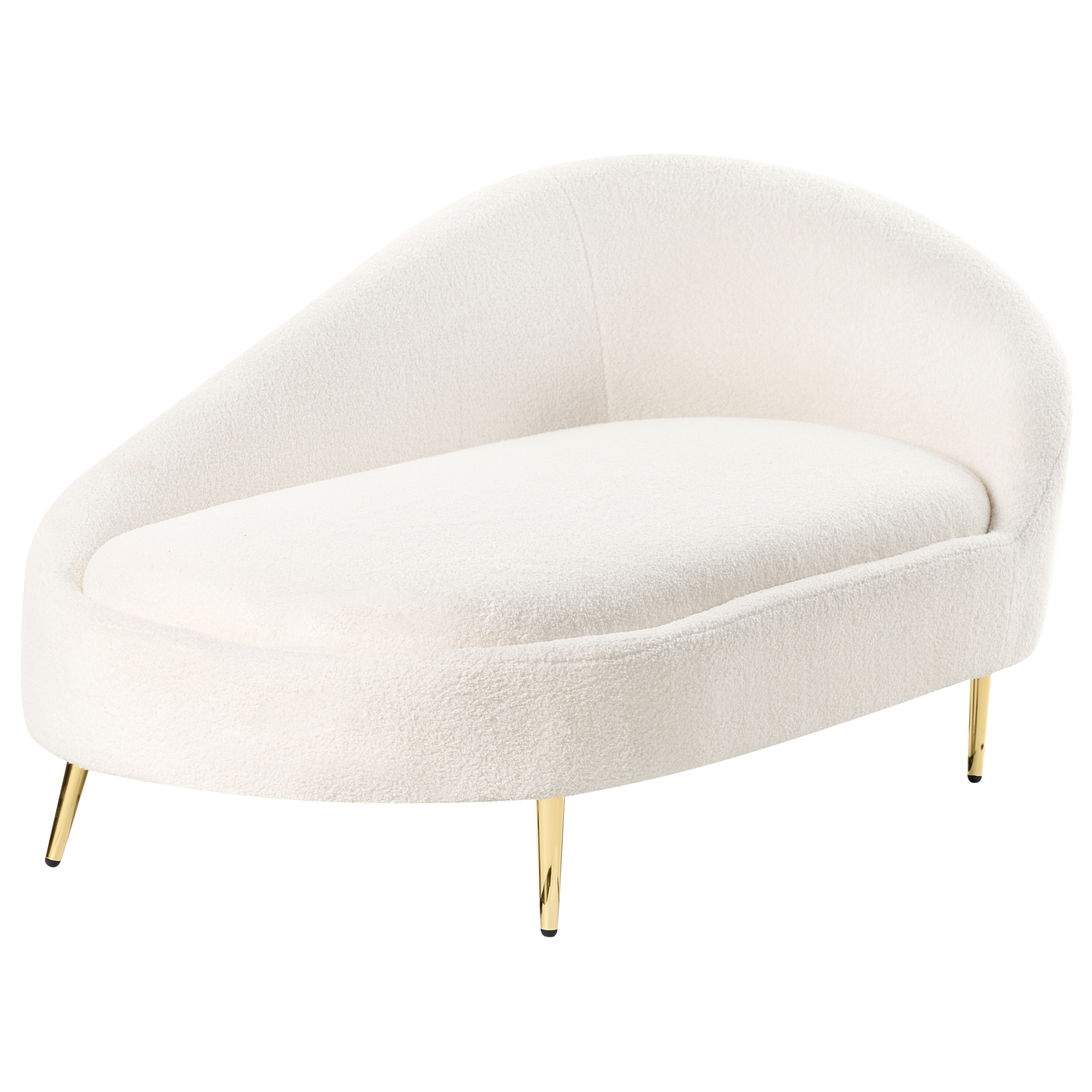 Pyöristetty lepotuoli kultaisilla jaloilla. Lisää tilaan ripaus glamouria tällä elegantilla divaanilla. Pehmeällä ja kestävällä luonnonvalkoisella bukleekankaalla verhoiltu divaani tarjoaa viihtyisän paikan rentoutumiseen. Tyylikkäät kultaiset metallijalat lisäävät hienostuneisuutta ja takaavat samalla pitkäikäisen vakauden. Tämä tyylikäs ja mukava divaani sopii täydellisesti mihin tahansa moderniin sisustukseen.